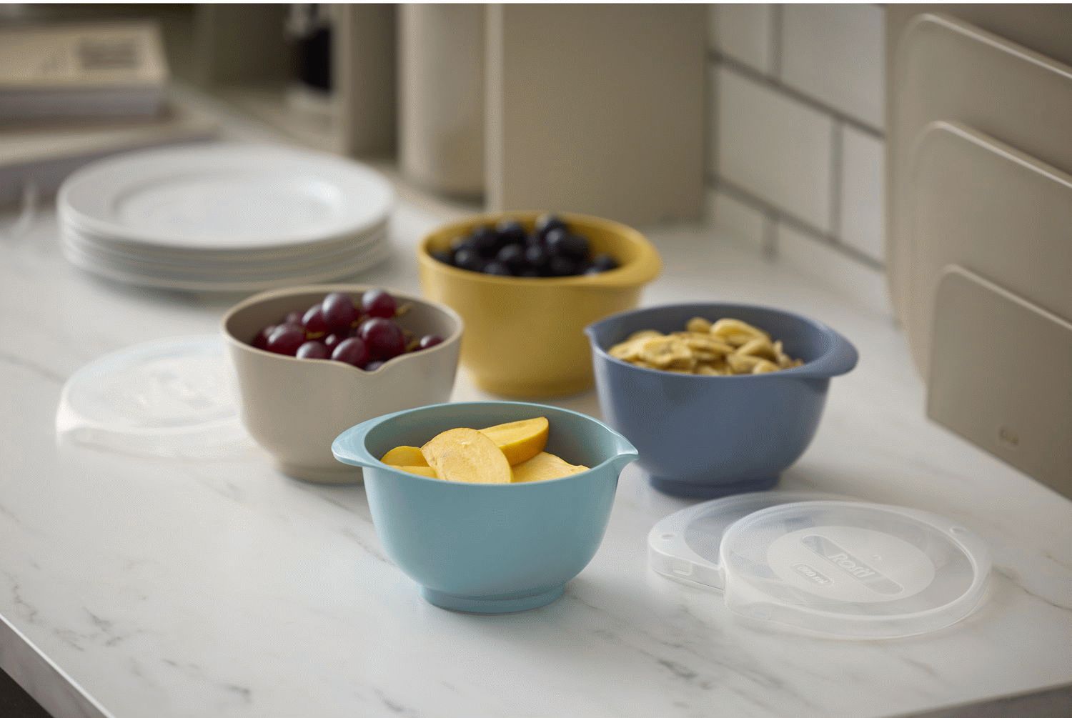 Dette sæt er fremstillet i Durostima®, et avanceret plastmateriale der gør skålene betydeligt stærkere og mere brudsikre end tidligere versioner. Materialet udvider desuden skålens anvendelsesmuligheder markant, da det kan tåle både mikroovn og fryser. De medfølgende låg forvandler røreskålene til praktiske opbevaringsskåle, hvilket gør dem ideelle til både tilberedning, servering og opbevaring af rester.