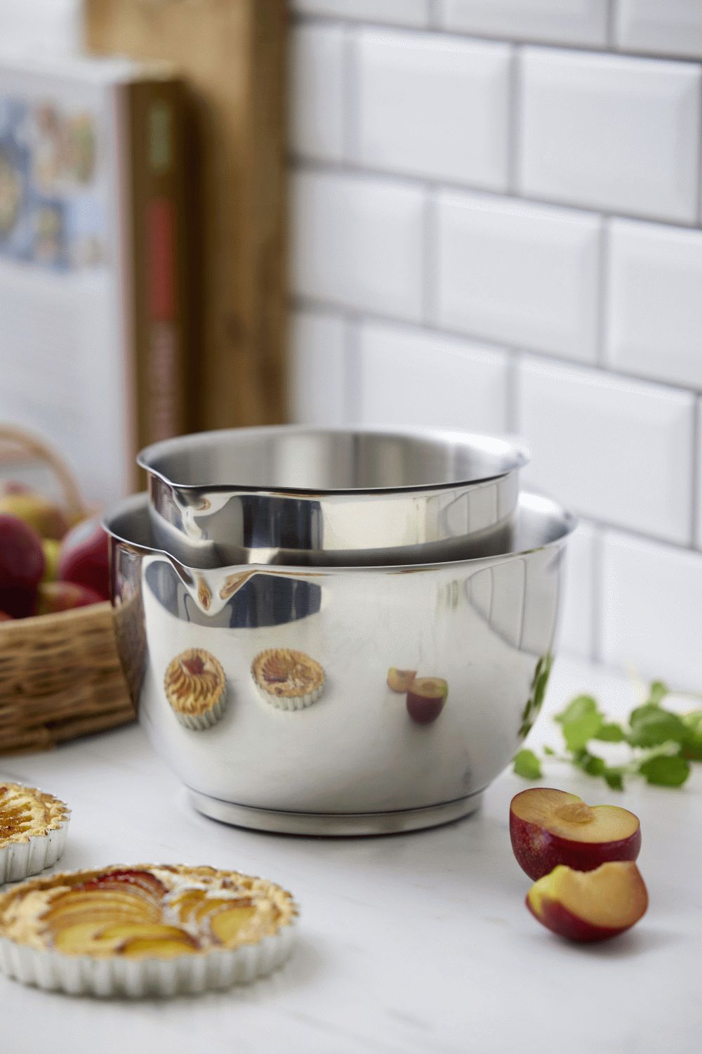 Rosti Margrethe røreskåle i rustfrit stål er et tidløst køkkenredskab, der forener dansk designtradition med moderne funktionalitet. Siden 1954 har Margrethe-skålen været en uundværlig del af danske køkkener, og denne stålversion løfter det klassiske design til nye højder med sin elegante finish og robuste konstruktion.Sættet består af to praktiske størrelser – en 1,5 liters skål til mindre opgaver og en 3,0 liters skål til større projekter. Uanset om du pisker en luftig kagecreme, ælter dej eller blander ingredienser til aftensmaden, giver disse skåle dig den perfekte arbejdsplads. Det rustfri stål sikrer en stabil og holdbar konstruktion, der kan håndtere både daglig brug og mere krævende madlavning.