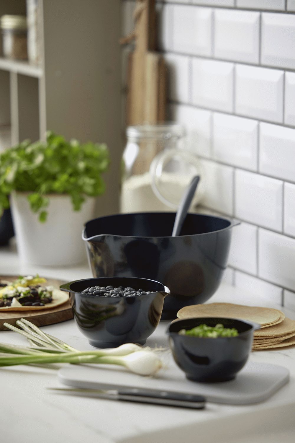 Skålen er fremstillet i det innovative Durostima® materiale, som giver den markant forbedret styrke og holdbarhed i forhold til tidligere versioner. Materialet sikrer en robust konstruktion, der kan modstå daglig brug i det travle køkken, samtidig med at skålen bevarer sin elegante form og finish. Den sorte farve giver et moderne udtryk, der passer perfekt ind i det skandinaviske køkkendesign.
