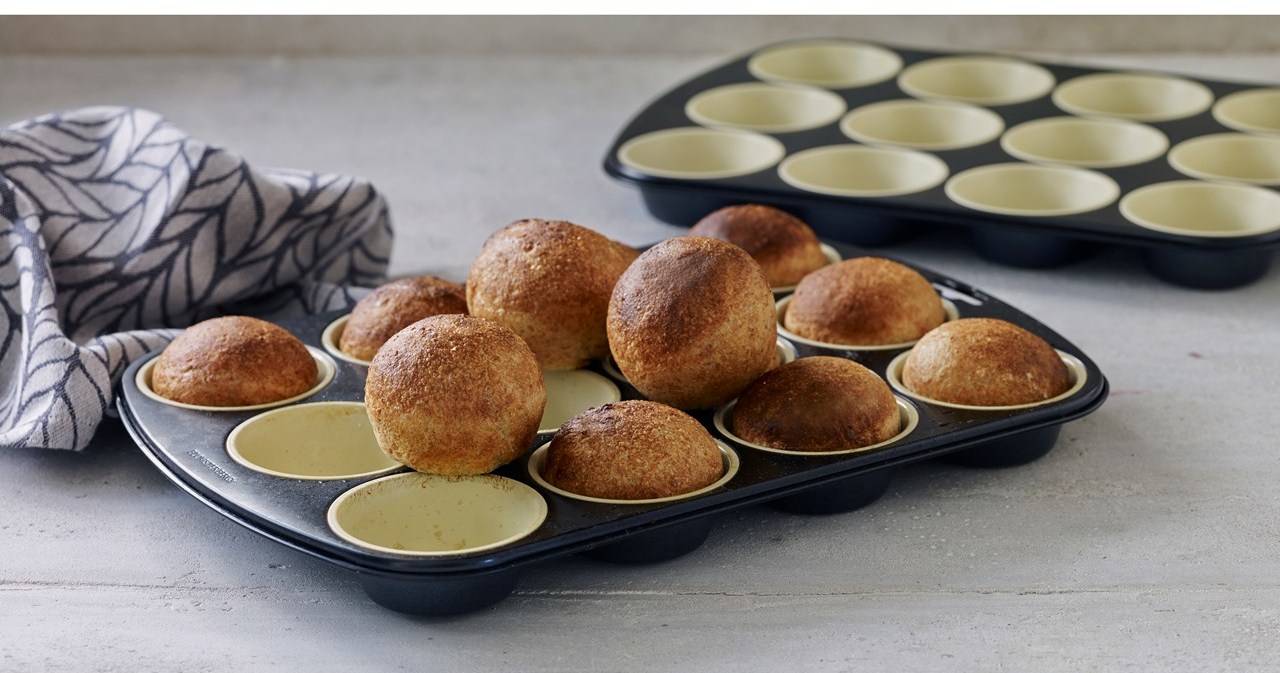 12 huller muffinform med non-stick keramisk belægning som slipper nemt, og er let at rengøre. Grå/creme Tåler ikke opvaskemaskine Tåler ikke fryser Max 220° C. Må ikke anvendes i mikroovn. Brug af træ- eller plastredskaber samt opvask i hånden anbefales.
