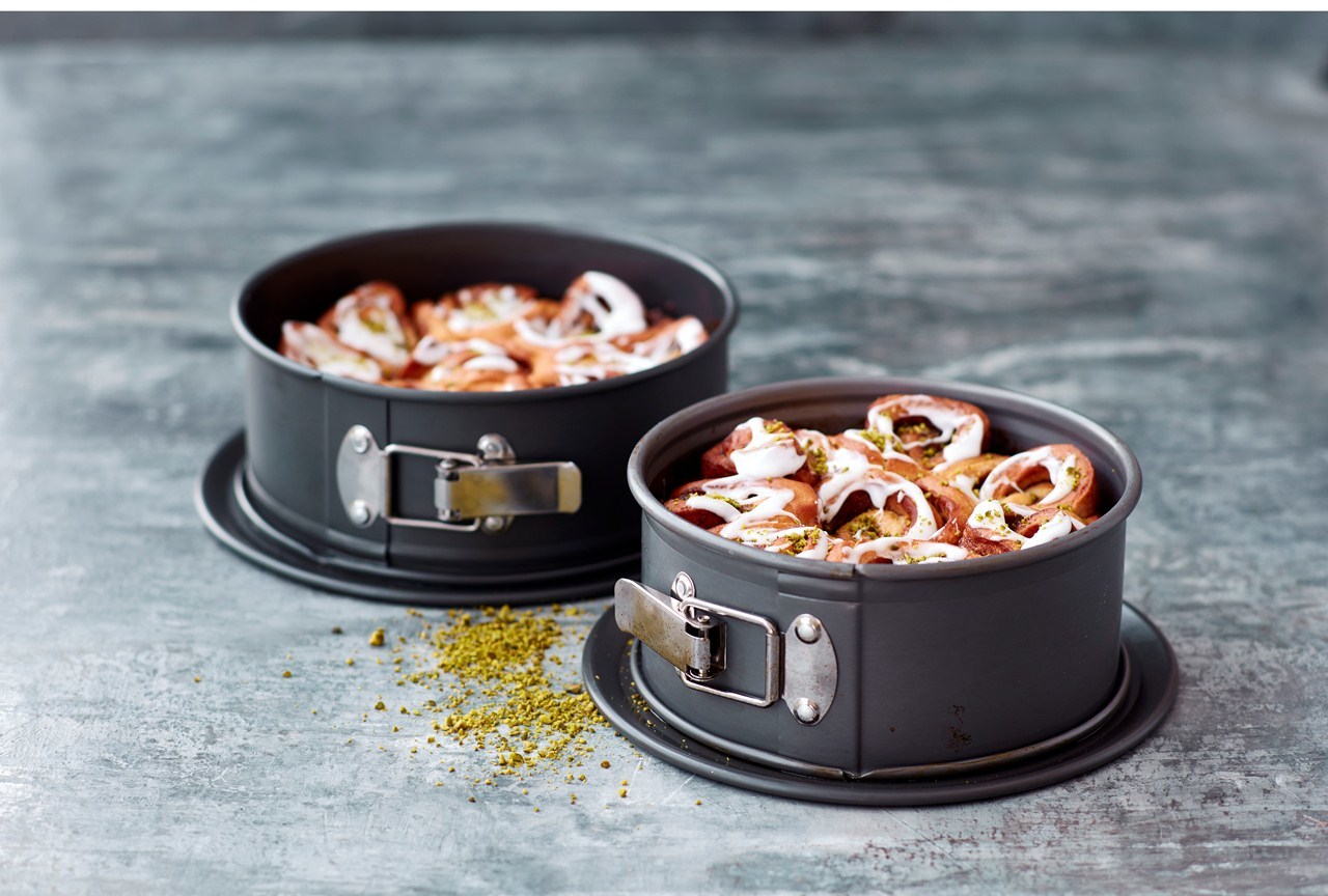 Springform Ø24 cm 3 liter Aluminium med anodiseret overflade Det anbefales altid at smøre formen med bagespray eller smags neutral olie. Max 230 grade Tåler ikke fryser Tåler ikke micro Håndvask anbefales