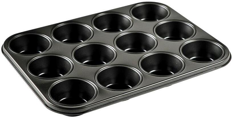 Muffinform med 12 rum/huller, fremstillet i stål med non-stick-belægning, som slipper nemt og er let at rengøre. Hvert hul rummer 0,12 liter.
