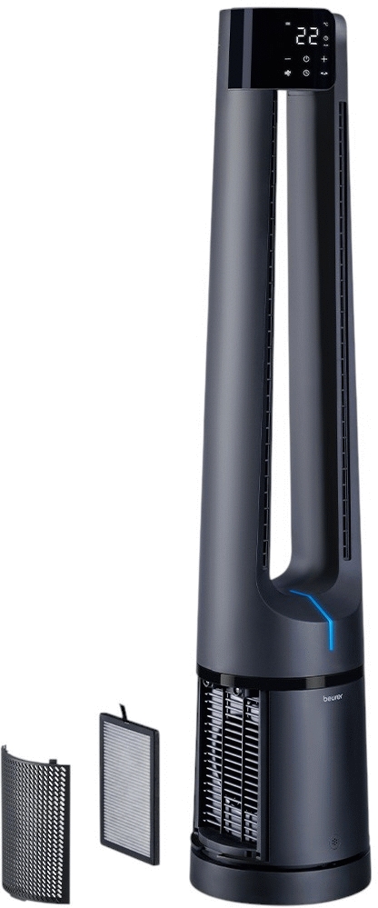 Beurer LV500 PureFlow revolutionerer måden, du oplever luftkvalitet på i dit hjem. Denne elegante tårnløsning kombinerer avanceret luftrensningsteknologi med kølig luftcirkulation i ét funktionelt design, der passer perfekt ind i moderne danske hjem og kontorer.Den innovative 2-i-1-funktionalitet gør denne enhed til en alsidig løsning året rundt. Om sommeren fungerer den som en effektiv towerfan, der skaber behagelig luftcirkulation uden støjende vifteblades, mens det avancerede 3-lags filtersystem konstant arbejder for at sikre ren, frisk luft. Forfilter, HEPA H13-filter og aktivt kul arbejder sammen om at fjerne selv de mindste partikler, støv, pollen og ubehagelige lugte fra dit indeklima.