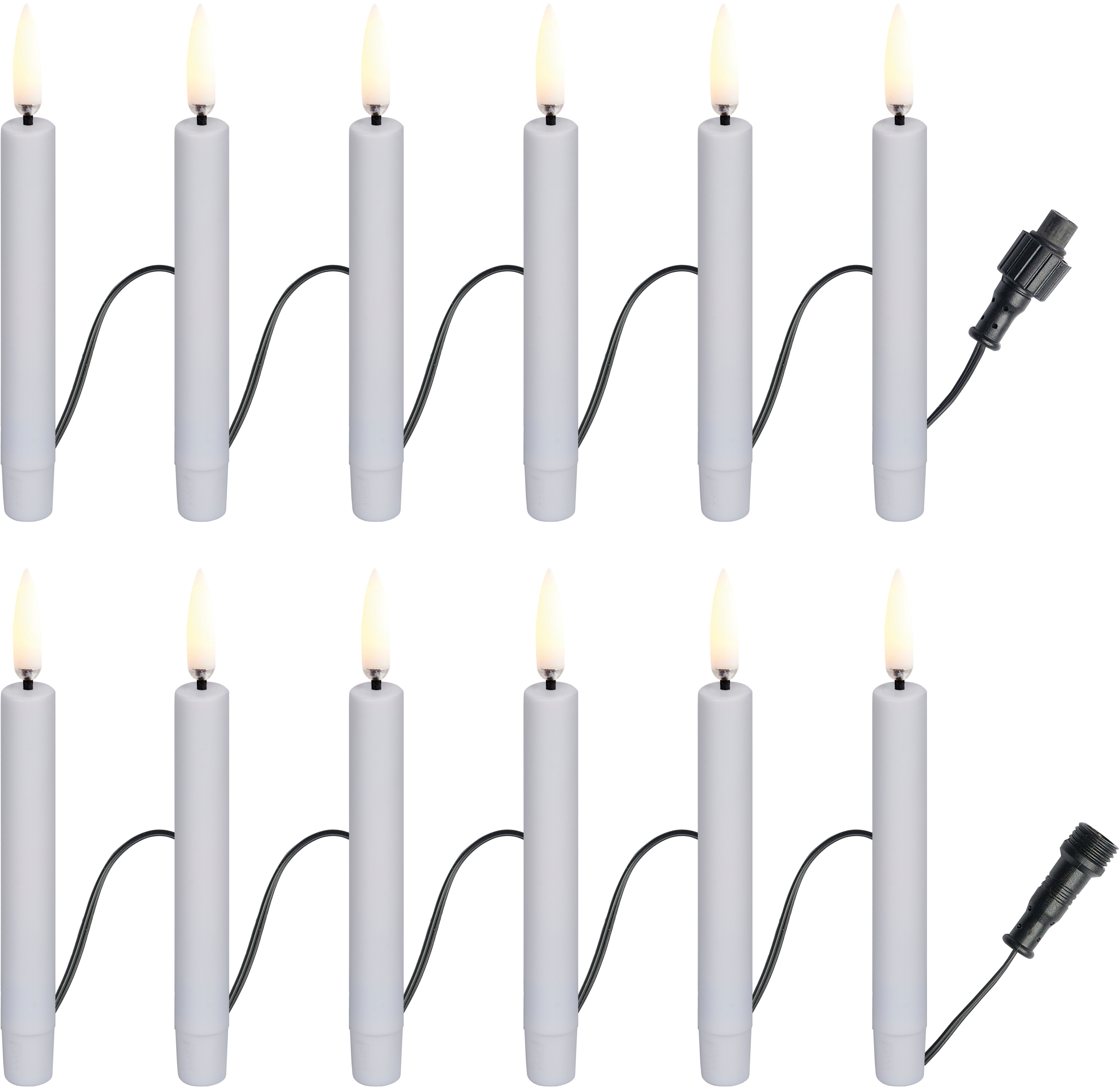 De 12 mini-stearinlys er forbundet via et diskret 9,97 m langt kabel og afgiver en varm, indbydende glød, der tilfører ethvert rum eller udendørsområde den rette julestemning. Med en diameter på 1,3 cm og en højde på 11 cm passer lysene perfekt ind i enhver dekoration uden at dominere.