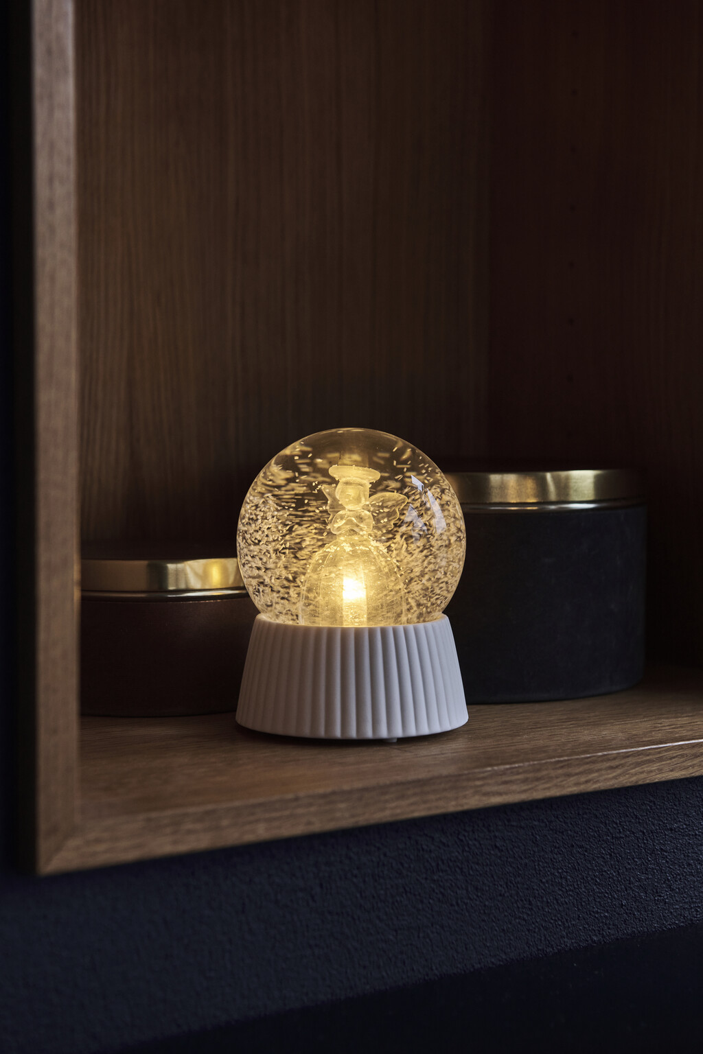 Dens faldende automatiske sne vil imponere dine gæster, og vil samtidig skabe et beroligende juleudtryk. Dens størrelse gør, at den kan stå på bordet i entreen, på reolen i stuen eller på natbordet i soveværelset. Du vil tilføje en dejlig julestemning hvor end du placerer den.