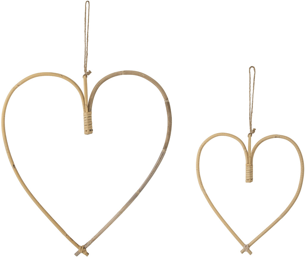Karima Ornamenterne fra Bloomingville er et sæt af to fine juleornamenter. De er lavet af rattan og formet som to hjerter i forskellige størrelser. Perfekt, hvis du ønsker et naturligt og enkelt udtryk i hjemmet.Højde: 29/37 cm