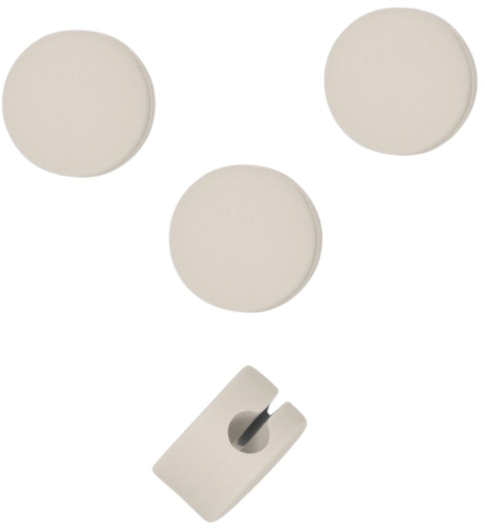 Designet er minimalistisk og diskret, så Cable Dots falder naturligt ind i både hjemmet og arbejdspladsen uden at virke forstyrrende. Den kompakte størrelse gør dem nemme at placere præcis der, hvor du har brug for dem, og den fleksible silicone sikrer, at kablerne kan bevæge sig frit uden at løsne sig fra holderen.