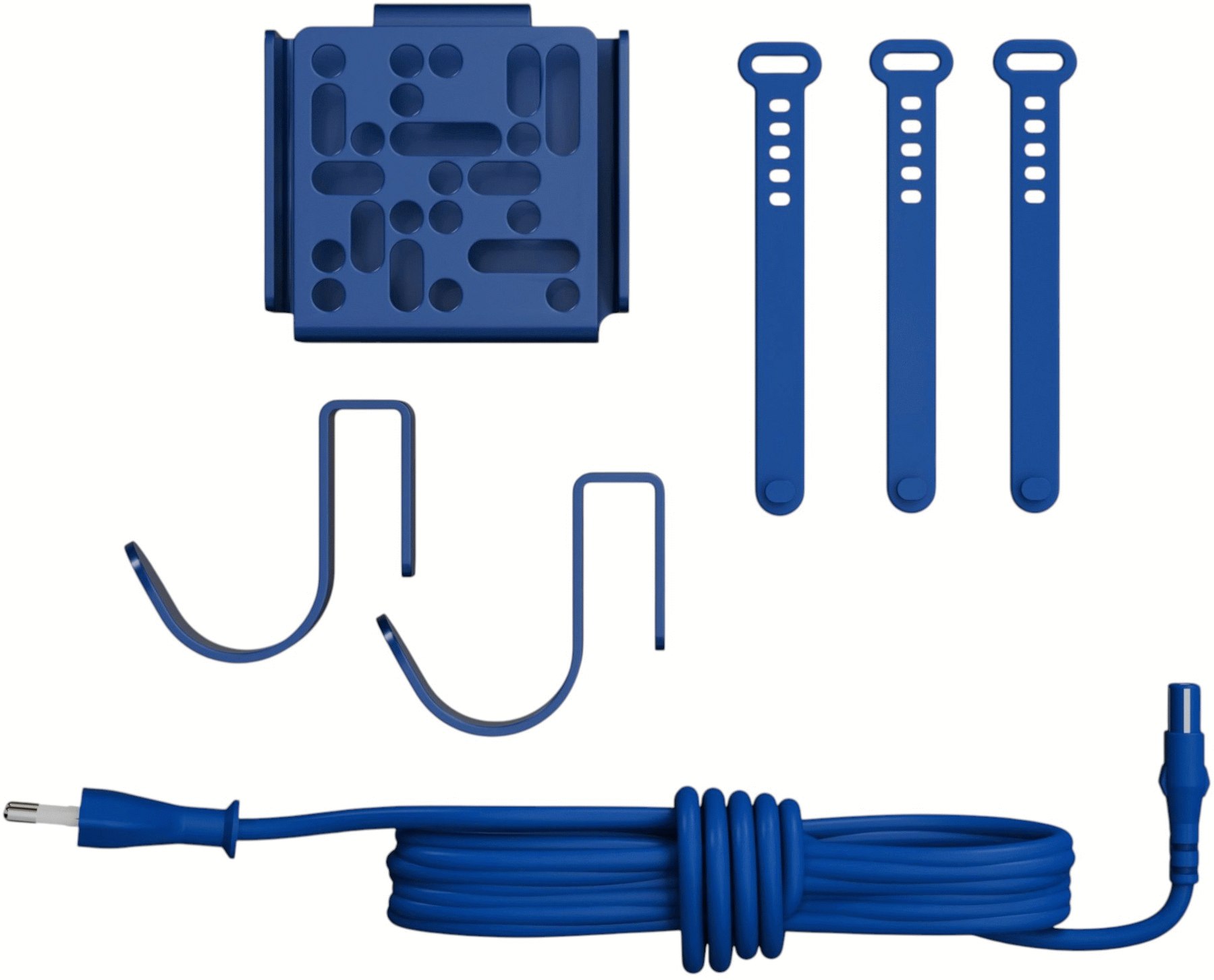 Pedestal Mount Bundle i Ultra Marine er en gennemtænkt løsning, der skaber orden og struktur bag dit tv-stativ. Dette komplette sæt sikrer, at alle kabler og tilbehør får deres faste plads, så området omkring dit tv fremstår ryddeligt og visuelt harmonisk.Bundlen er designet til at løse de praktiske udfordringer, der ofte opstår ved opsætning af tv-udstyr. Med en dedikeret opbevaringsløsning til fjernbetjeningen undgår du at lede efter den, når du skal skifte kanal eller justere lyden. Samtidig sikrer systemet, at strømforsyningen til dit tv placeres optimalt, mens kablerne holdes samlet og skjult væk fra syne.