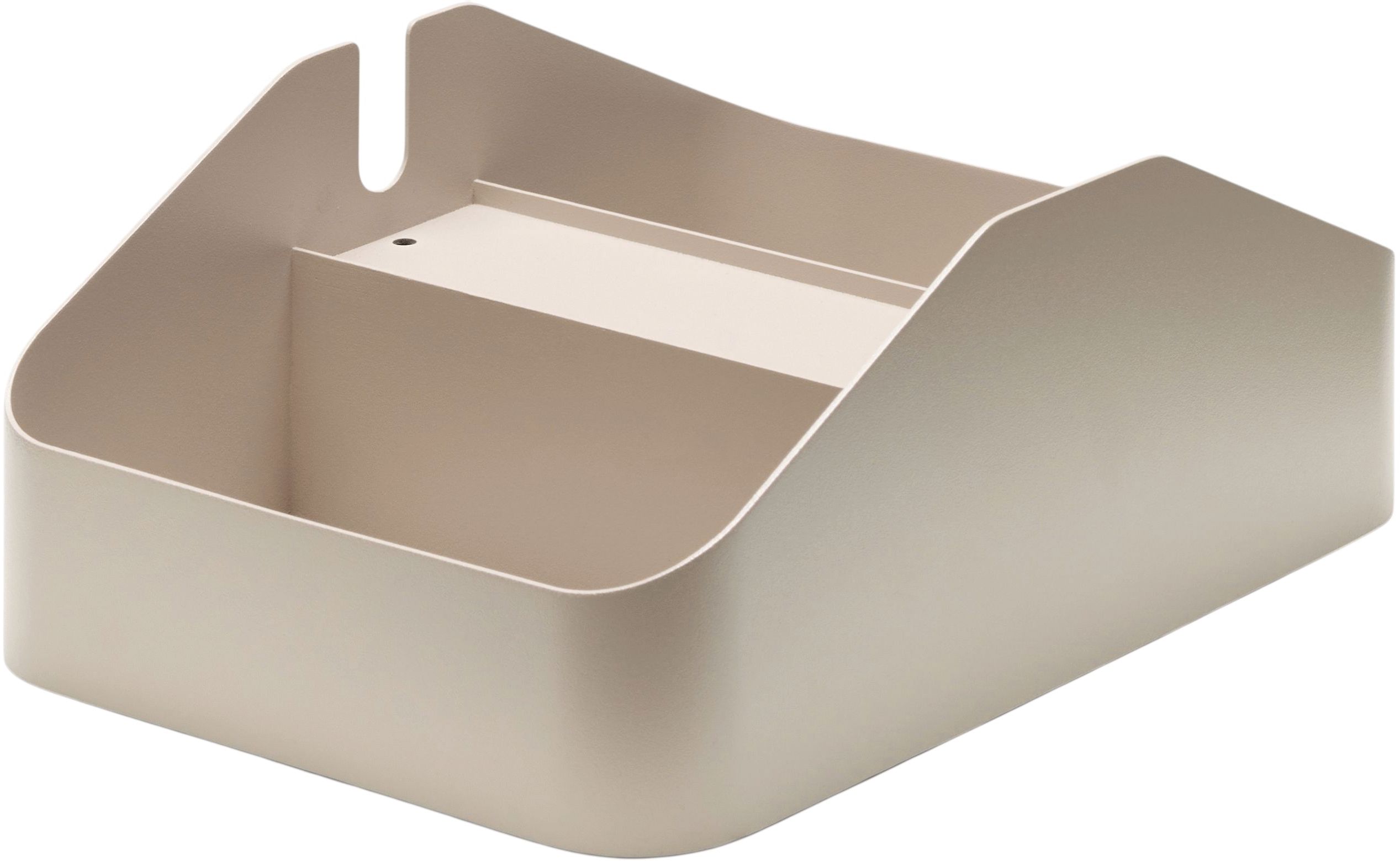 Power Bar Tray Double er en stålorganizer designet til at passe til en Power Bar. Med to separate opbevaringsrum giver den ekstra plads til at organisere kabler, adaptere og alle de små nødvendigheder, der typisk samler sig på skrivebordet.Den integreres problemfrit med Power Bar og skaber en elegant løsning, der kombinerer strøm og opbevaring i ét samlet system.