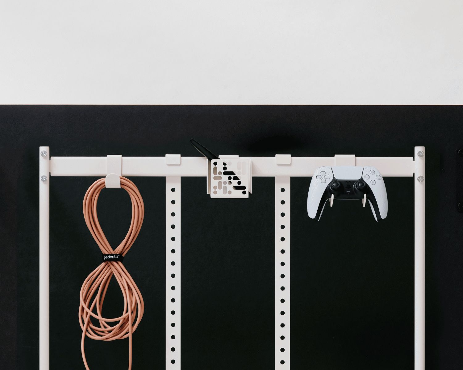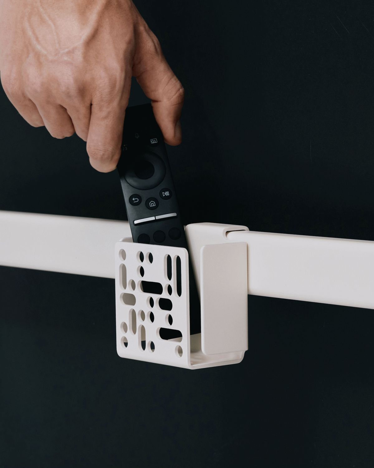 Avoid disturbances in the décor when you are not watching TV. Organize your remote controls or other accessories easily by placing them in Pedestal’s Remote Box Mount, which is placed on the back of the TV. Create a central hub for accessories belonging to your electronics. Remote Box Mount is made of aluminium with Pedestal's signature pattern and fits all our stands except VivaLængde: 4,2 cm
