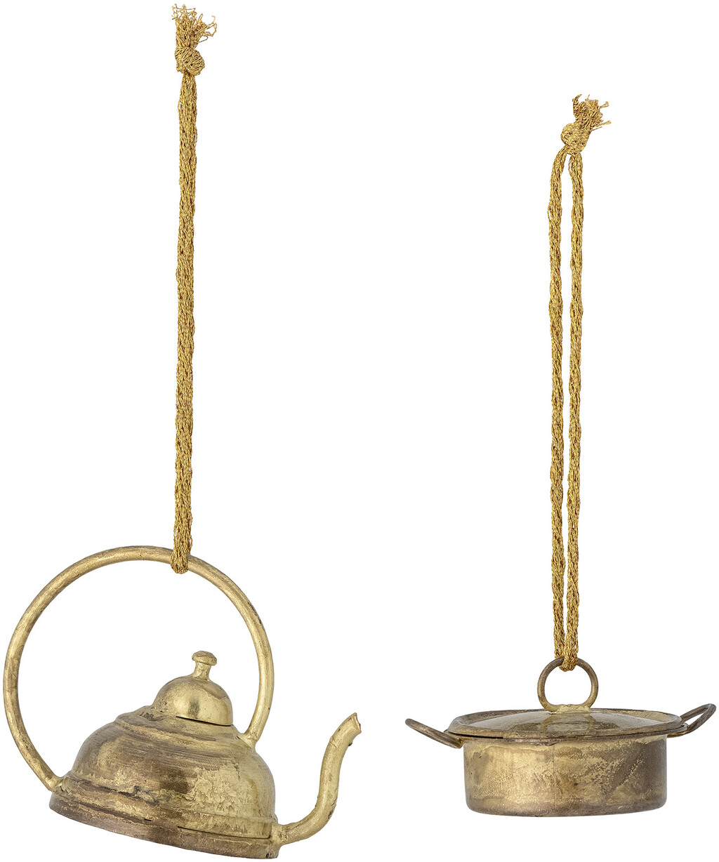 Gracia Ornamenterne fra Bloomingville er et sæt af 2 virkelig fine juleornamenter. De er lavet af metal og skal forestille en lille kedel og gryde med låg, i et antikt look. De vil helt sikkert pynte på juletræet eller enhver anden dekoration.Højde: 6/3 cm