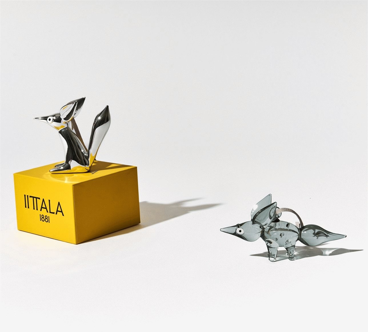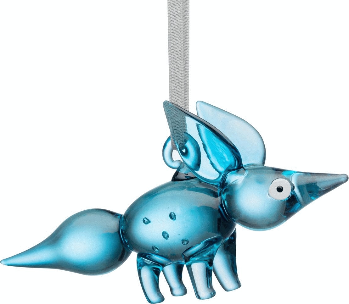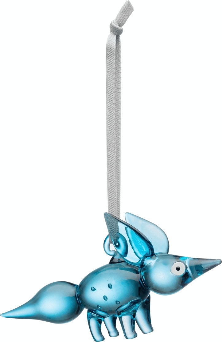- Stående ræveornament i blå glasudførelse fra Iittala