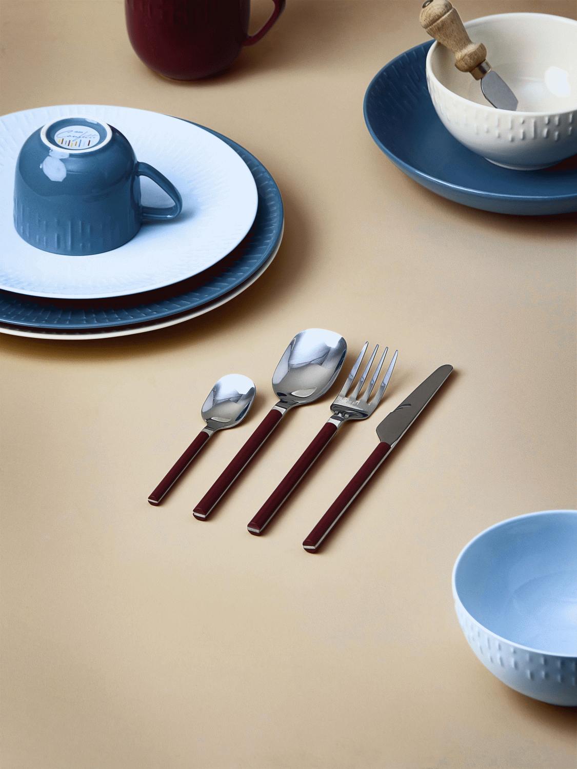 Confetti-serien giver dig mulighed for at udtrykke din personlige stil ved bordet. Du kan nemt kombinere det røde bestik med andre farver fra samme serie eller matche det med Confetti stellet for at skabe en sammenhængende og kreativ borddækning. Designet er både æstetisk tiltalende og praktisk, med en ergonomisk udformning der sikrer, at hvert enkelt bestikdel ligger behageligt i hånden under brug.