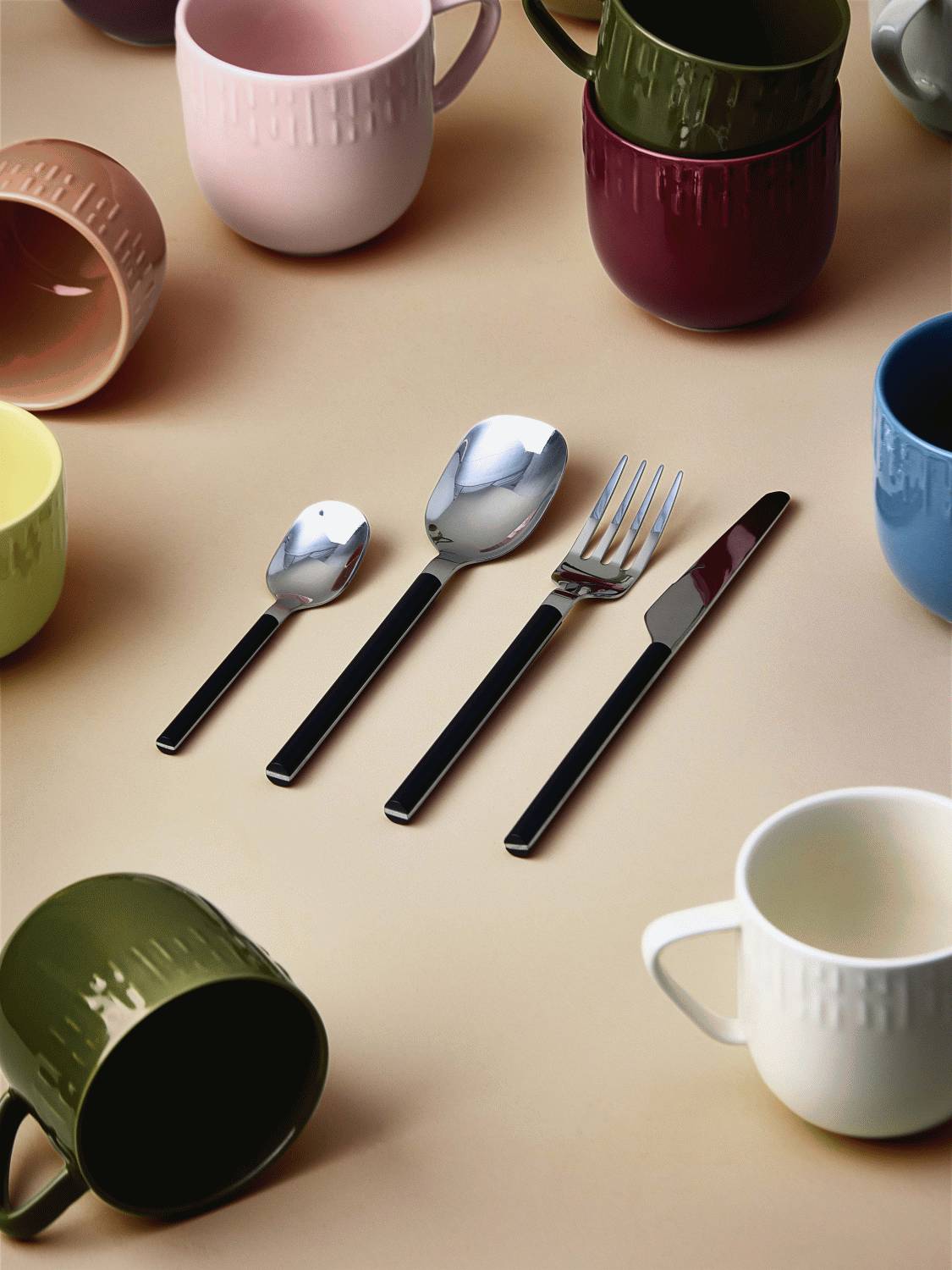 Bestikket er omhyggeligt formet, så det ligger behageligt i hånden og giver en god balance under måltidet. Den ergonomiske udformning sikrer komfort, uanset om det er til den daglige morgenmad eller til festlige sammenkomster. Den dybe sorte farve giver bestikket et nutidigt udtryk, der passer perfekt ind i både moderne og klassiske køkkener.