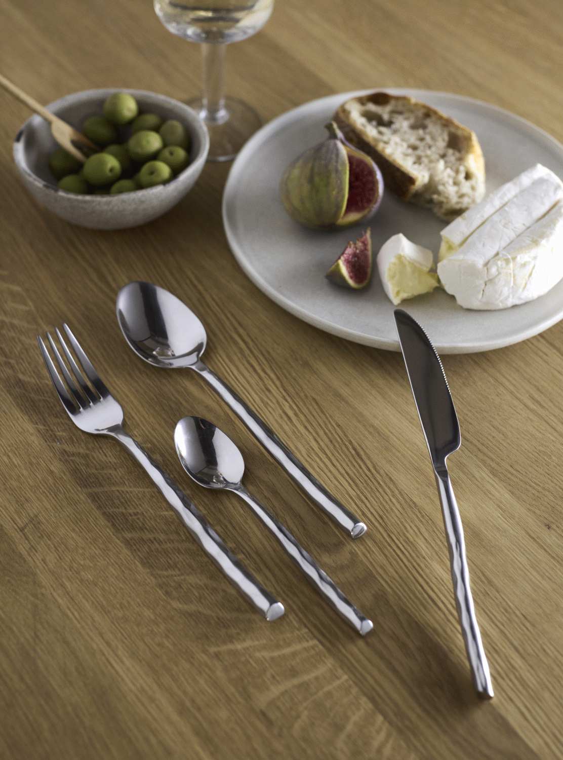 Ergonomien er gennemtænkt i hver detalje. Bestikstykkerne ligger naturligt i hånden med et behageligt greb, der gør både hverdagsmåltider og festlige sammenkomster til en mere sanselig oplevelse. Den organiske formgivning er ikke blot æstetisk tiltalende – den understøtter også funktionaliteten og gør bestiksættet behageligt at bruge gennem længere måltider.