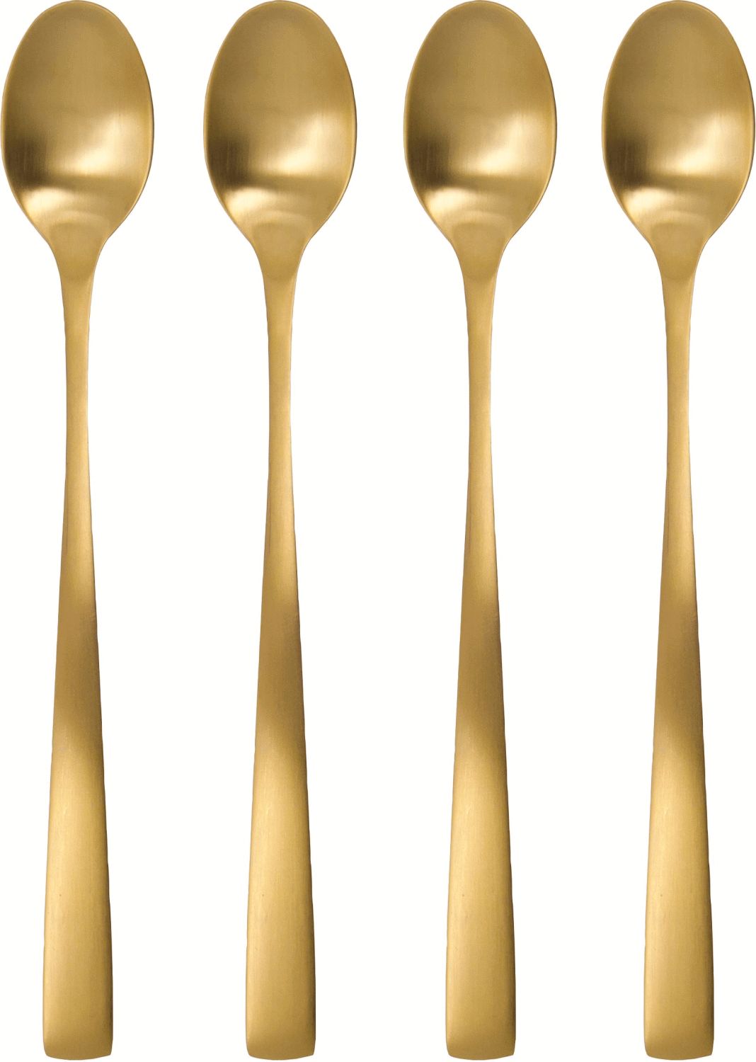 Et sæt langskeer i gylden finish bringer en raffineret detalje til bordet og skaber en eksklusiv atmosfære ved enhver servering. House Doctor har designet disse fire skeer med fokus på både funktionalitet og æstetik, så de passer perfekt til moderne hjem, hvor stil og kvalitet går hånd i hånd. Skeerne er fremstillet i rustfrit stål og behandlet med titaniumoxid, hvilket giver den karakteristiske gyldne overflade. Denne finish skaber et visuelt løft og tilføjer varme til borddækningen, uanset om det er en afslappet frokost eller en festlig middag.Med en længde på 18,2 cm er skeerne ideelle til drinks, desserter, cocktails og servering af høje glas. De fungerer også fremragende som teske til latte, iskaffe eller til at anrette lækkert på tallerkenen. Det slanke design med en bredde på 2,6 cm gør dem nemme at håndtere og sikrer, at de ligger behageligt i hånden. Titaniumoxidbehandlingen giver ikke kun et eksklusivt udtryk, men bidrager også til en robust overflade, der holder til daglig brug.