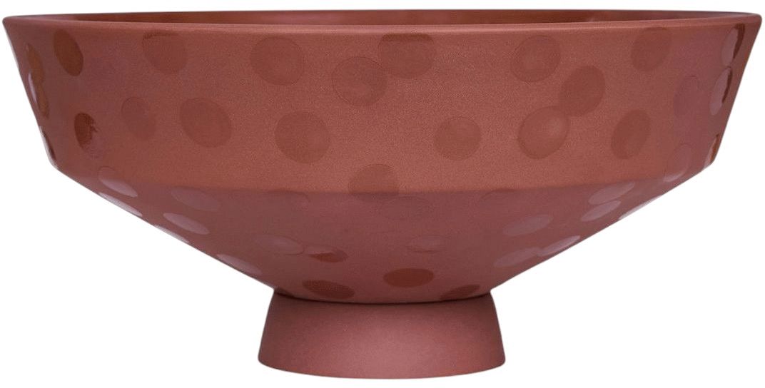 Navnet "Luonto" betyder "natur" på finsk og afspejler perfekt skålens organiske formsprog og håndværksmæssige kvalitet. Den naturlige terracotta-farve skaber en varm og indbydende atmosfære, mens den prikkede tekstur tilfører visuelt interessante detaljer, der fanger lyset på smukke måder.