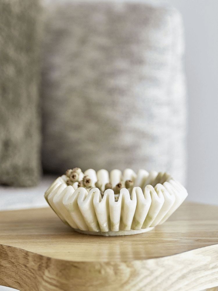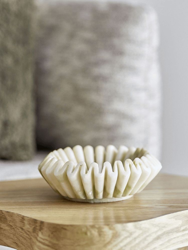 - Skulpturel skål i naturligt marmor med poleret overflade