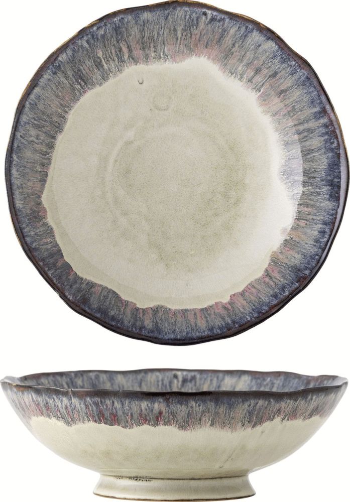 Imogen Skålen fra Bloomingville bringer et levende farvespil ind i hjemmet med sin karakteristiske reaktive glasur i blå og varme nuancer. Med en diameter på 24 cm er denne skål et elegant og funktionelt element, der passer perfekt til både hverdagsbrug og festlige anledninger. Den er fremstillet i stentøj, et robust materiale kendt for sin holdbarhed og tidløse æstetik.Den reaktive glasur giver skålen et kunstnerisk udtryk, hvor farverne flyder naturligt sammen og skaber et unikt mønster på hver enkelt skål. Dette betyder, at ingen to skåle er helt ens – små variationer i farveintensitet og mønster gør hver Imogen Skål til et individuelt stykke håndværk. De blå nuancer blandet med varme toner skaber en harmonisk kontrast, der tilføjer personlighed og karakter til borddækningen.