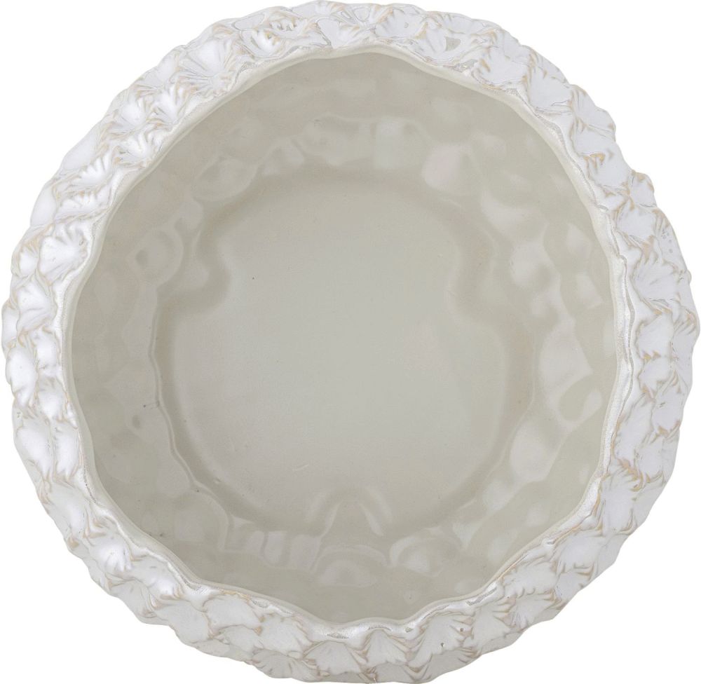 Lowen skålen fra Bloomingville kombinerer kunstnerisk formgivning med funktionel elegance i et design, der henter inspiration fra naturens organiske former. Med sin karakteristiske bølgede kant og skulpturelle udtryk bliver denne skål et smukt dekorativt element, der tilføjer personlighed og stil til hjemmet.Skålen er fremstillet i robust stentøj og behandlet med en elektropletteret finish, der giver overfladen et eksklusivt præg. Det koralinspirerede mønster i bløde beige nuancer skaber en spændende kontrast til den glatte, hvide finish og giver skålen en unik tekstur, der fanger lyset på en smuk måde. Den organiske karakter gør Lowen skålen til et statement-piece, der passer lige så godt som centerpiece på spisebordet som til opbevaring af frugt eller som dekorativt element på en hylde.