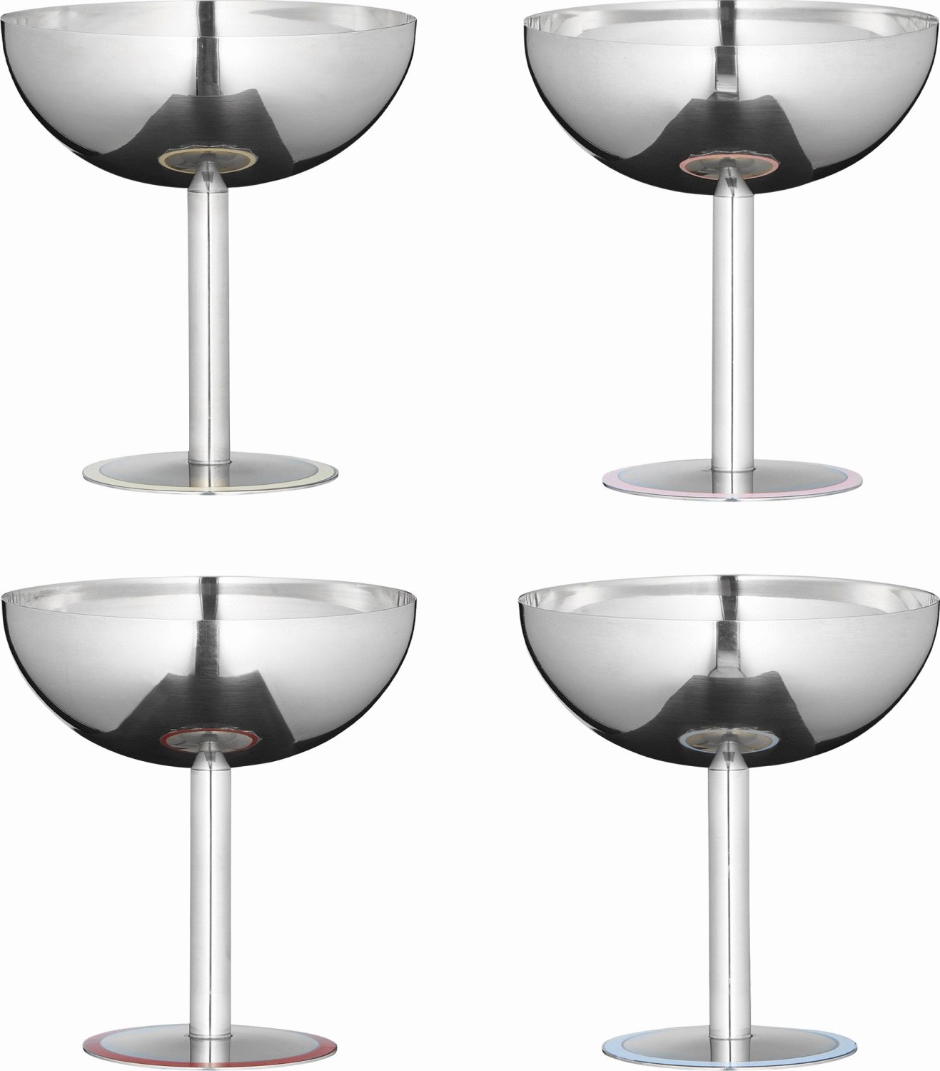 Det rustfri stål sikrer en holdbar og stilfuld konstruktion, mens den diskrete farvelinje tilføjer en moderne twist til det klassiske design. Skålene er alsidige i deres anvendelse og egner sig perfekt til isdesserter, champagne eller cocktails. De kan også bruges til små, lækre anretninger, der skal præsenteres med stil. Med deres kompakte størrelse og elegante udtryk passer de lige så godt til hverdagsbrug som til festlige lejligheder.