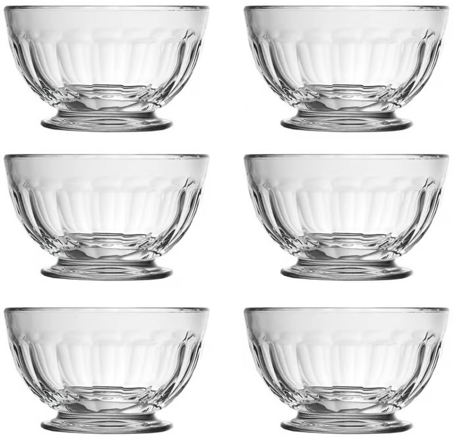 - Sæt med 6 identiske skåle i klart glas