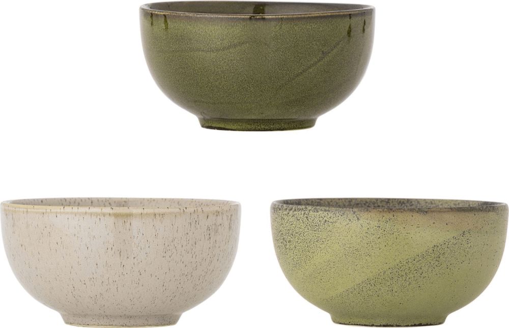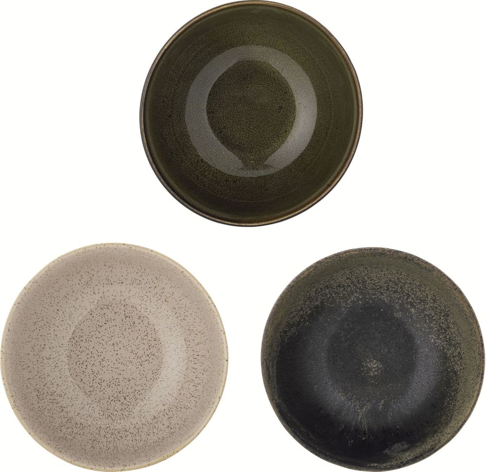 - Sæt med 3 skåle i stentøj med reaktiv glasur