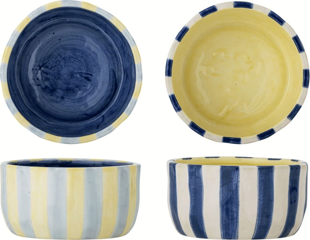 Bloomingville Phoenix Skål bringer et levende og kunstnerisk udtryk til borddækningen med sit håndmalede design og markante striber i bløde nuancer. Dette sæt består af to skåle i stentøj, hvor hver enkelt skål er formet med omhu og dekoreret med lodrette striber, der skaber et dynamisk og moderne look. Den blanke inderside giver en elegant kontrast til det farvede ydre og fremhæver skålens funktionelle design.Stentøj er et robust og holdbart materiale, der er ideelt til daglig brug. Det tåler både opvask i maskine og opvarmning i mikrobølgeovn, hvilket gør Phoenix Skålene praktiske i hverdagen. Den håndmalede overflade betyder, at hver skål har små naturlige variationer i mønster og farvedybde, hvilket giver dem et unikt og personligt præg. Ingen to skåle er helt ens, og det er netop denne individualitet, der gør dem særlige.