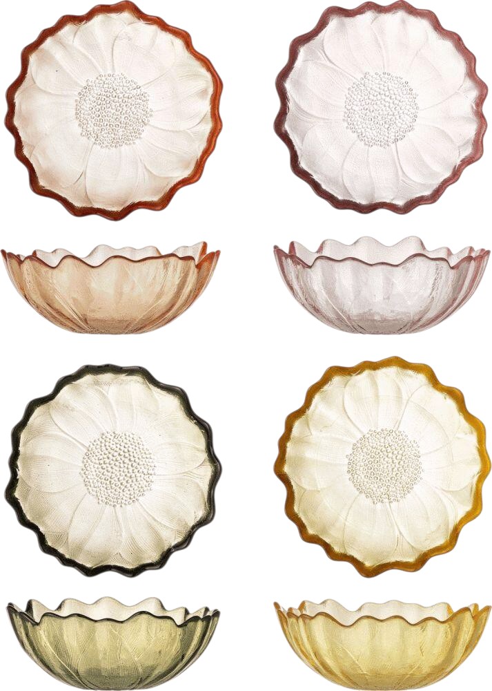 - Sæt med fire glasskåle i blomsterformet design