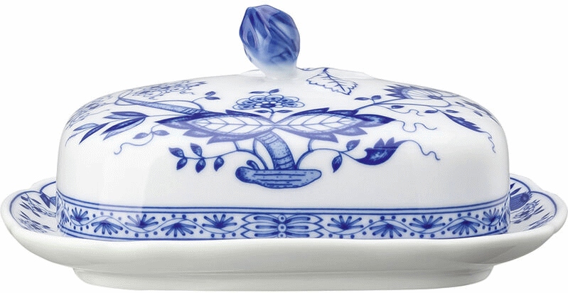 Hutschenreuther Blau Zwiebelmuster smørboks er mere end blot opbevaring – det er en hyldest til klassisk porcelænskunst, der beriger dit køkken og bord med stil og karakter.