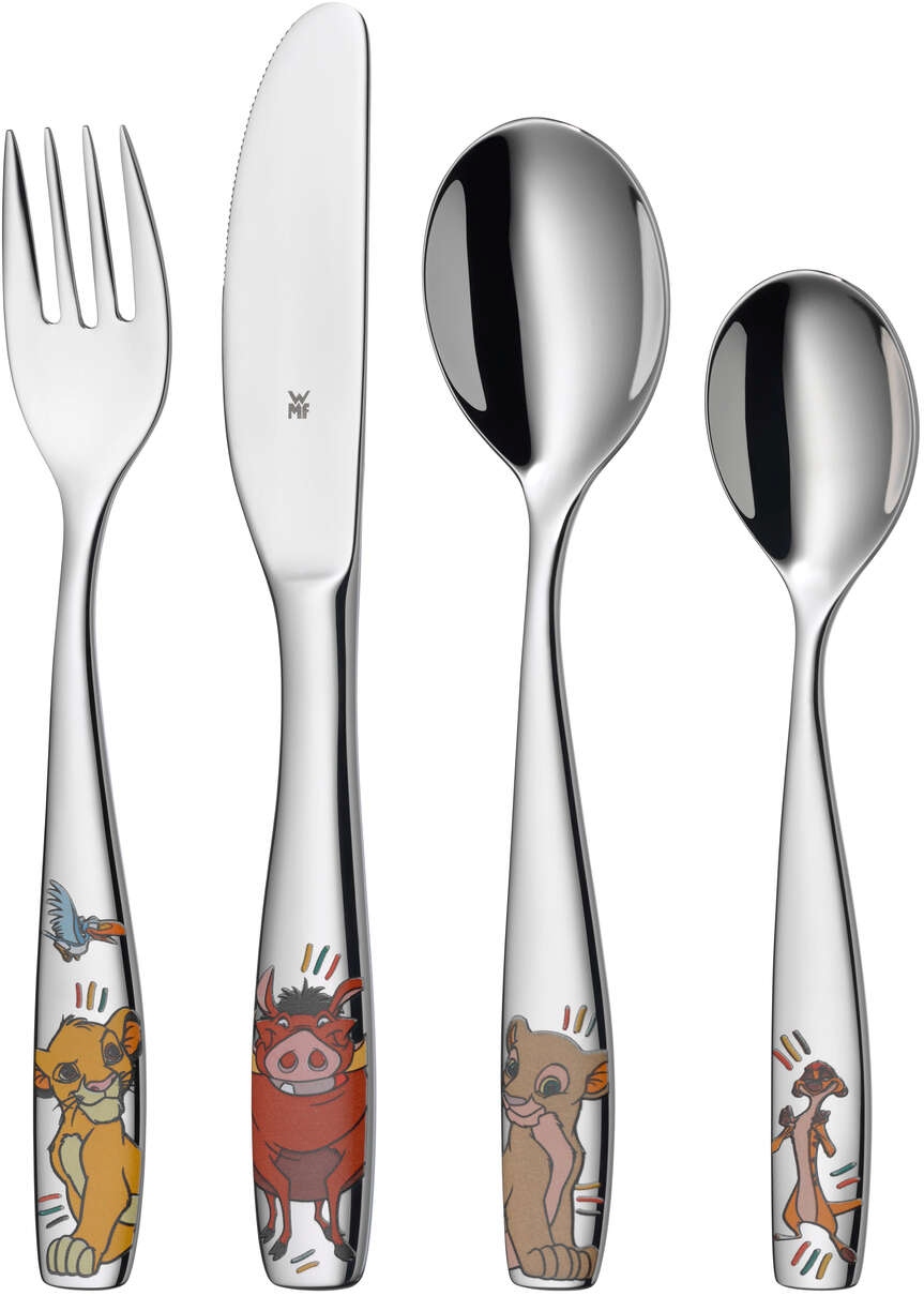 Løvernes Konge overbeviser med en nuttet dyre- og vidunderlig afrikansk steppeverden. Løvekongen Mufasa overdrager herredømmet til sin søn, Simba. Løverne og de mange venner er kendt i hele verden og har i mange år været kendt fra biografen, musicals, tv og mange veludviklede licensprodukter. Med en perfekt afbalancering, ergonomisk udformning og et mundret design skaber både knive, gafler og skeer begejstring med deres funktionalitet, ligesom de glade motiver udstråler en helt unik charme. Med tallerkenen og skålen bliver nydelsen fuldendt.overflade: Poleret