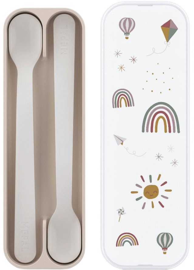 Den medfølgende opbevaringsboks gør skeerne ideelle til undervegsaktiviteter. Boksen sikrer hygiejnisk opbevaring og gør det nemt at tage skeerne med til daginstitution, på picnic eller til bedstefar og bedstemor. Denne praktiske løsning betyder, at børnene altid kan have deres eget bestik ved hånden.