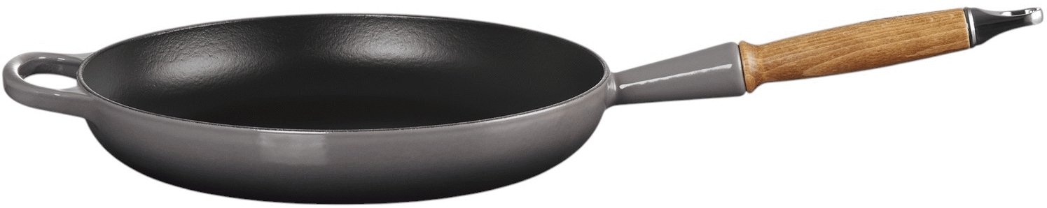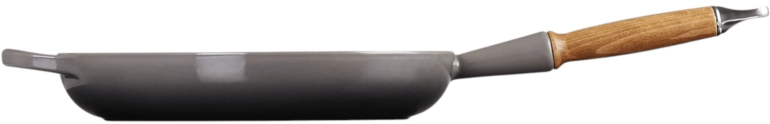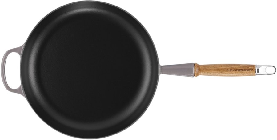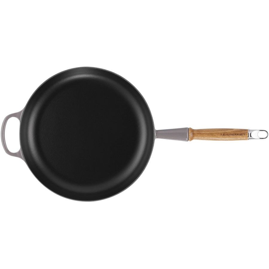Le Creuset Signature stegepande i flint kombinerer tidløs elegance med kompromisløs funktionalitet. Denne 28 cm stegepande, udført i Le Creusets verdensberømte emaljerede støbejern, er designet til at blive et centralt redskab i dit køkken gennem generationer. Det solide støbejern sikrer en exceptionel varmefordeling, der giver perfekt bruning og svidning af alle råvarer - fra saftige bøffer til sprøde grøntsager.Stegepandens innovative design omfatter et ergonomisk hjælpehåndtag, der giver ekstra stabilitet under madlavningen, mens det elegante træhåndtag forbliver behageligt køligt. Den praktiske indbyggede krog gør det nemt at opbevare panden på væggen, så den både fungerer som et funktionelt redskab og et dekorativt element i dit køkken.