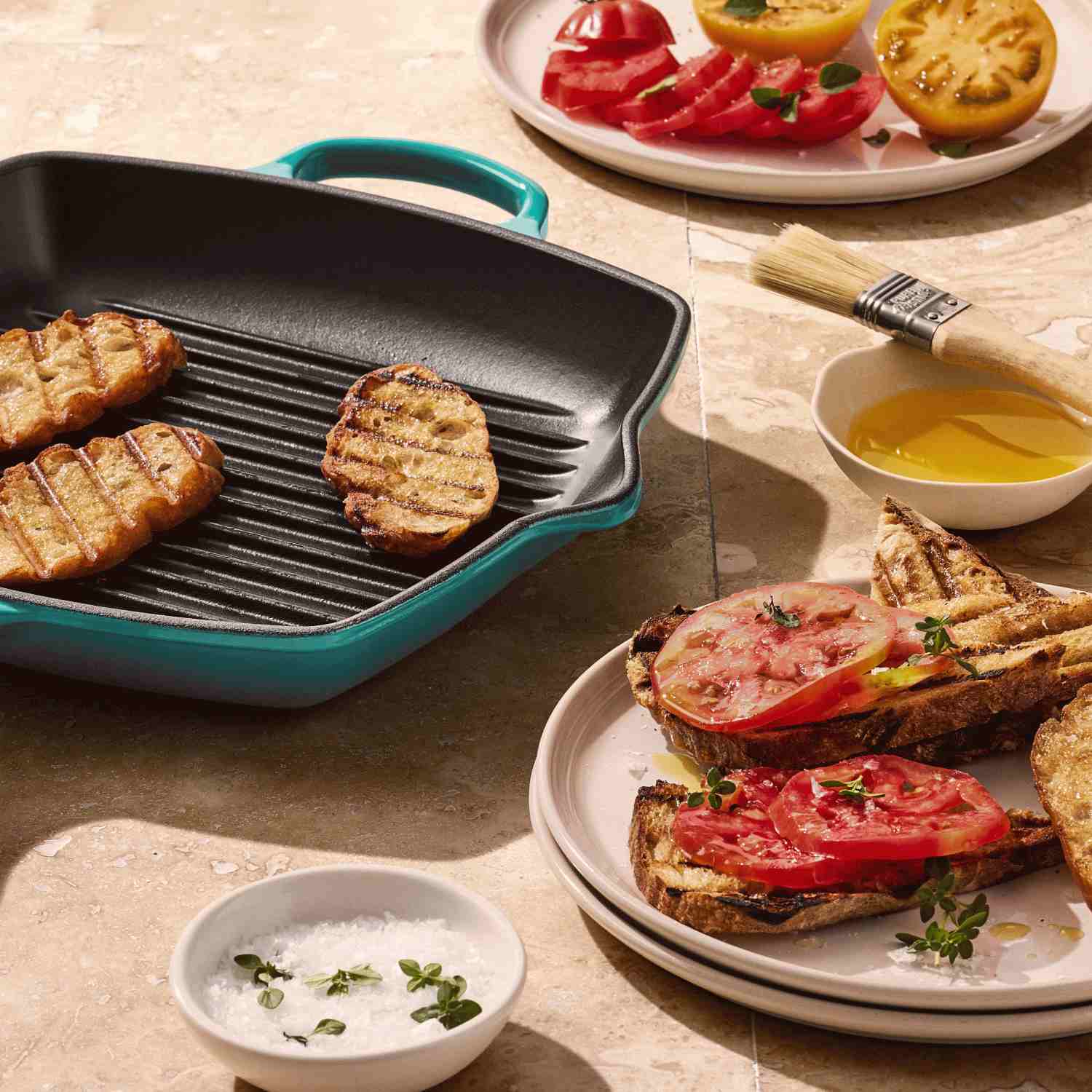 Le Creuset Signature grillpande i Bleu Riviera er et køkkenredskab, der forener æstetik med funktionalitet og holder i generationer.