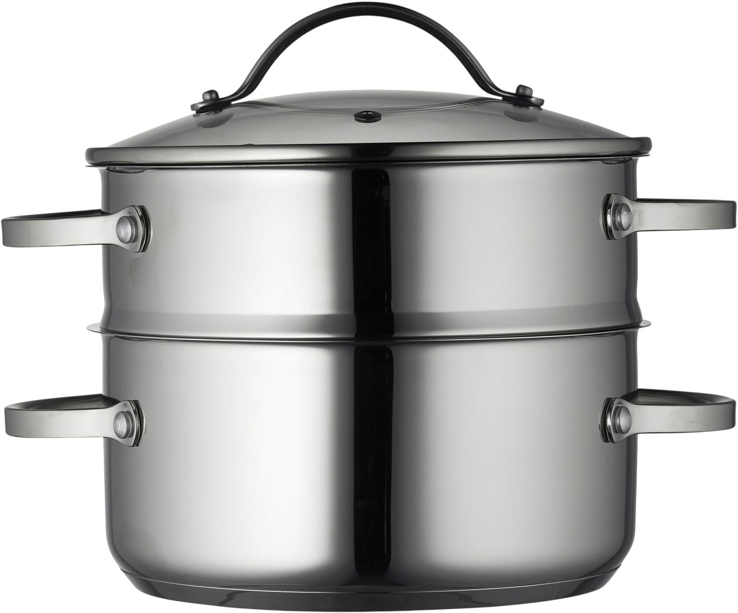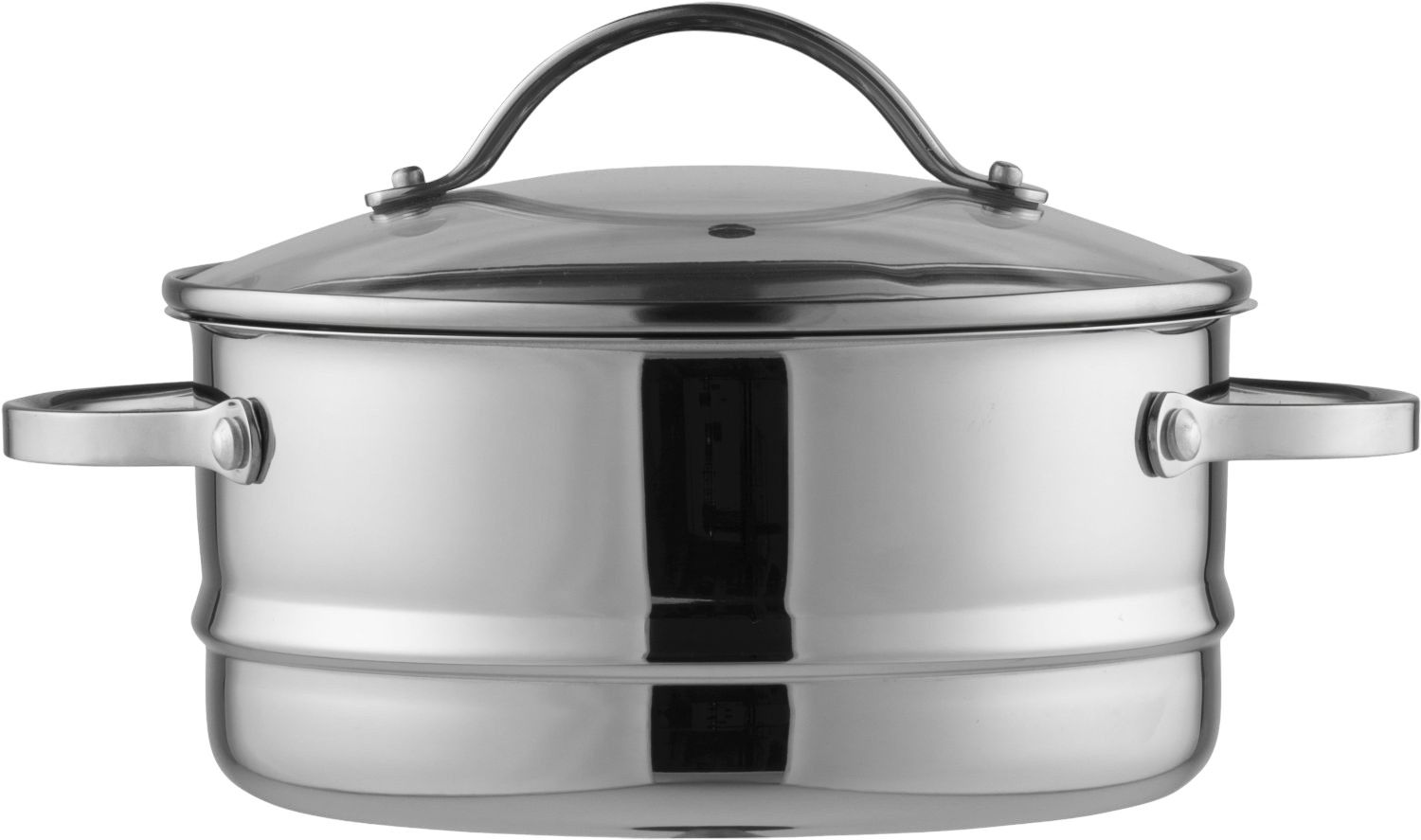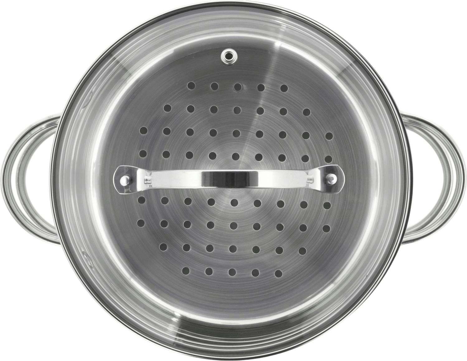 Dampgryden er konstrueret i holdbart rustfrit stål og består af tre veldesignede komponenter: en 20 cm bundgryde, en perfekt tilpasset dampindsats og et glaslåg med strategisk placeret damphul, der sikrer optimal cirkulation af damp under tilberedningen. Dette gennemtænkte design giver dig mulighed for at dampe grøntsager i toppen, mens du samtidig koger ris, pasta eller kartofler i bunden - alt sammen i én samlet enhed.