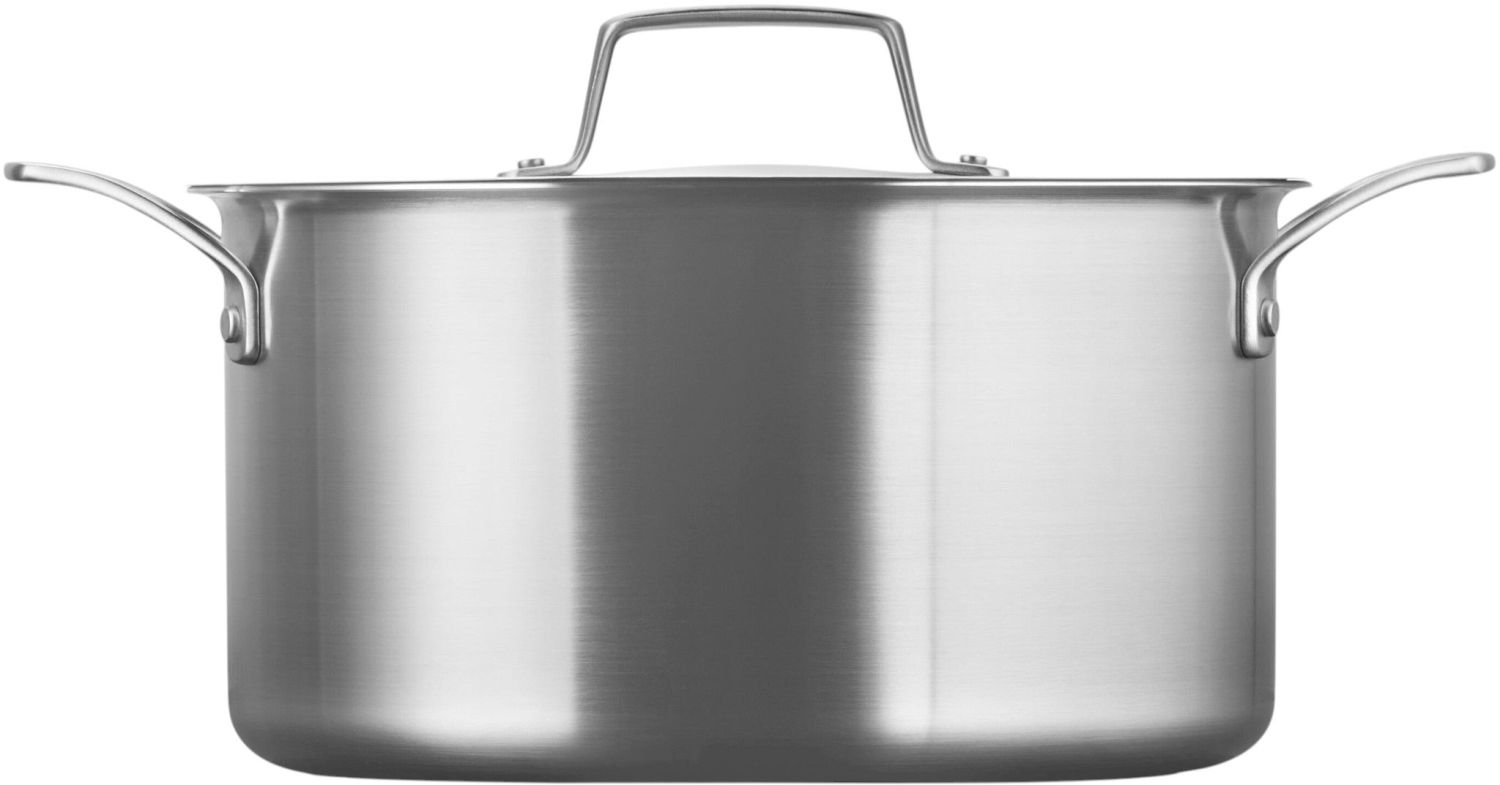 Le Creuset Essential 3-Ply gryden med låg i 24 cm er designet til at levere professionel madlavning i dit eget køkken. Denne dybe gryde i rustfrit stål kombinerer funktionel innovation med tidløs elegance og gør det muligt at tilberede alt fra kraftige simreretter til delikate grøntsagsretter med perfektion.Gryddens 3-lags konstruktion sikrer en hurtig og jævn varmefordeling, der eliminerer varme pletter og giver ensartet tilberedning hver gang. Det tætsluttende låg i rustfrit stål holder fugt og smag inde i gryden, hvilket resulterer i saftige, velsmagende retter med fuldt udtryk. Den børstede overflade både indvendigt og udvendigt giver et moderne, stilrent udtryk, der passer ind i ethvert køkken.