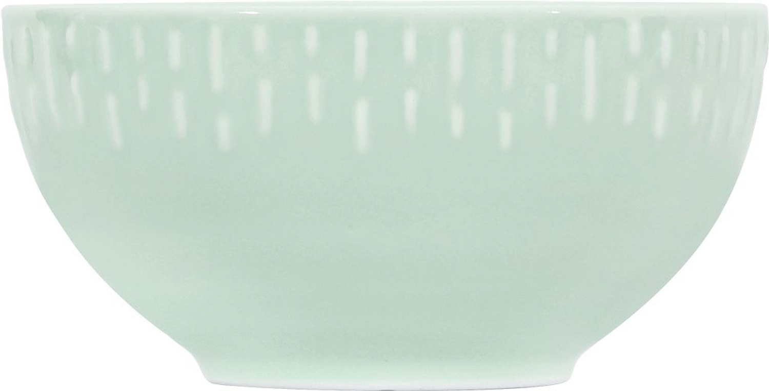 Confetti skålen udmærker sig med sin unikke dekoration, hvor et tilfældigt relief løber hele vejen rundt om kanten. Dette relief afslører den hvide porcelæn under den lysegrønne glasur og skaber et visuelt spil, der giver skålen karakter og dybde. Det er denne detalje, der gør hver skål til et lille kunstværk og sikrer, at din borddækning får et personligt og stilfuldt præg.