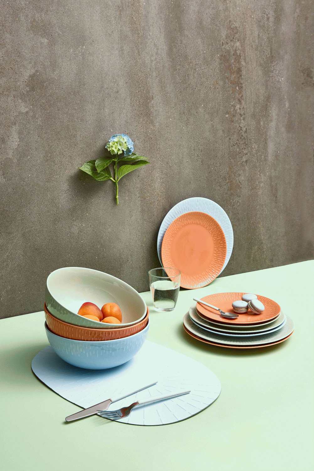 - Lyseblå farve, der tilføjer friskhed til bordet