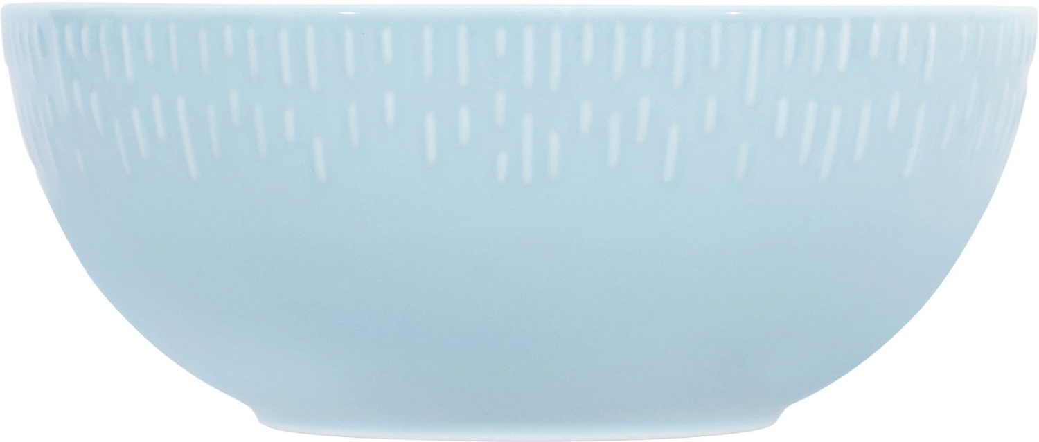 Denne lyseblå skål fra aida's Confetti-serie bringer både funktionalitet og farveglæde til dit køkken. Med en diameter på 24,5 cm er den ideel til mange forskellige formål – fra at blande salater og servere tilbehør til at kreere desserter og snacks. Det karakteristiske reliefmønster langs kanten giver skålen et unikt og legende udtryk, der gør hver enkelt skål til et lille kunstværk på bordet.Confetti-serien er designet til at give dit hjem mere farve, både til hverdag og fest. Den lyseblå nuance er frisk og indbydende, og den hvide porcelænsbund skinner elegant igennem under det dekorative relief. Dette skaber en flot kontrast, der fremhæver både materialets kvalitet og det kunstneriske design.