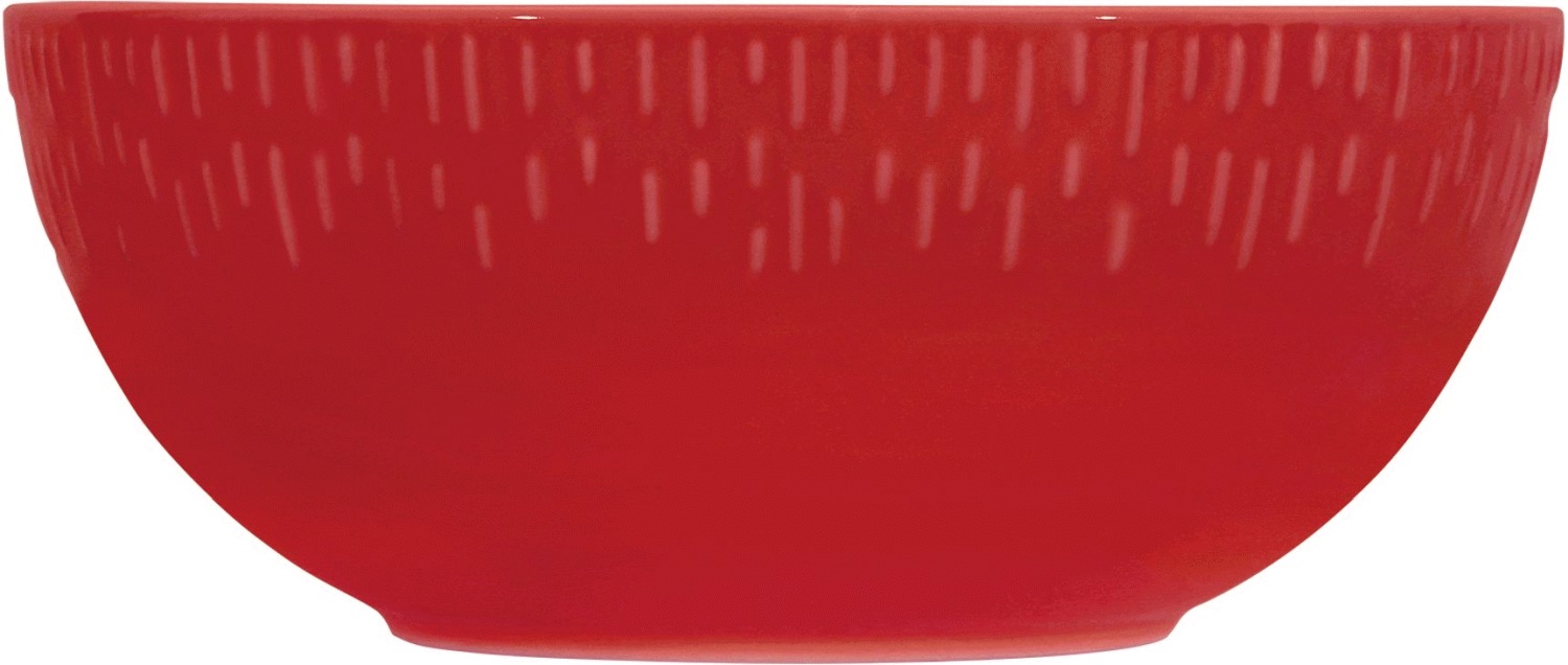 Confetti-skålen er fremstillet i 100% hvidt porcelæn af høj kvalitet og præsenterer et karakteristisk relief langs kanten, der skaber en legende kontrast til den røde farve. Det hvide porcelæn skinner subtilt igennem under relieffet og giver skålen et unikt, håndlavet udtryk. Det tilfældige mønster sikrer, at hver skål har sin egen personlighed, hvilket gør den til en smuk detalje på bordet.