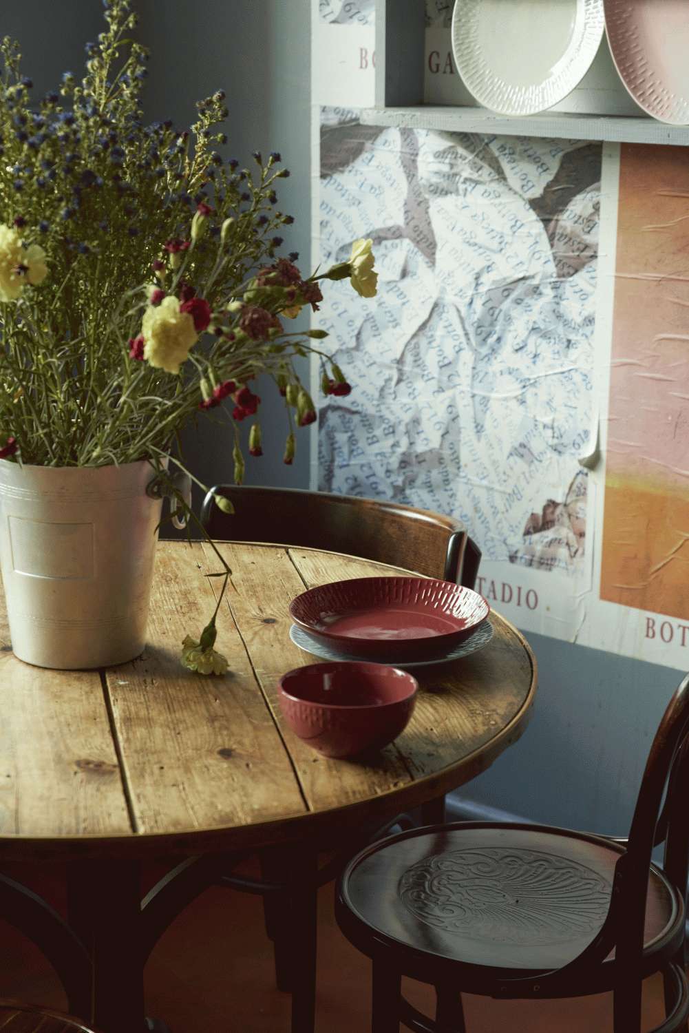 Skålen er smukt dekoreret med et tilfældigt reliefmønster langs kanten, der skaber et spændende visuelt udtryk. I relieffet skinner det hvide porcelæn igennem og danner en elegant kontrast til den røde glasur. Dette sammenspil mellem farve og form giver skålen et moderne og levende udtryk, der fanger blikket og tilfører personlighed til enhver borddækning.