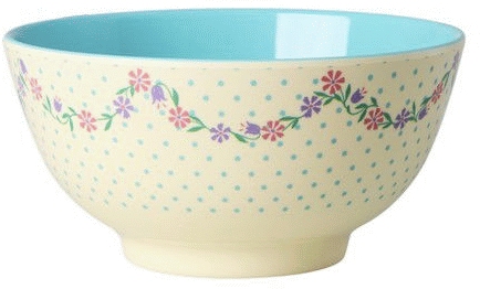 Skålen er fremstillet i melamin, et robust materiale der tåler daglig brug og er nem at holde ren. Det gør den perfekt til familier med børn, hvor der er brug for service der kan klare hverdagens udfordringer uden at gå i stykker. Det muntre print med prikker og blomster giver bordet et personligt og indbydende udtryk, uanset om det er til morgenmaden, en varm suppe eller fredagsslikket.