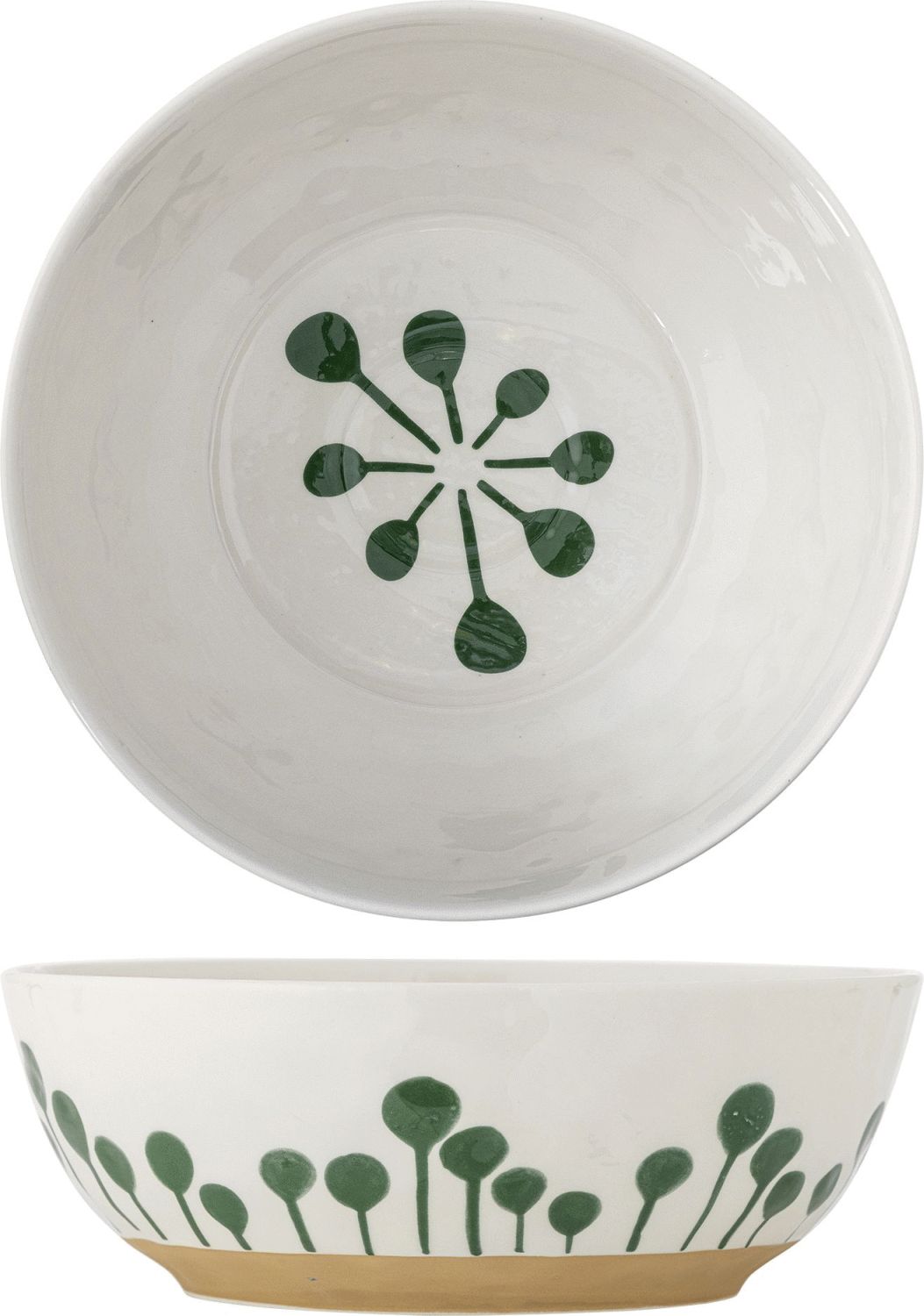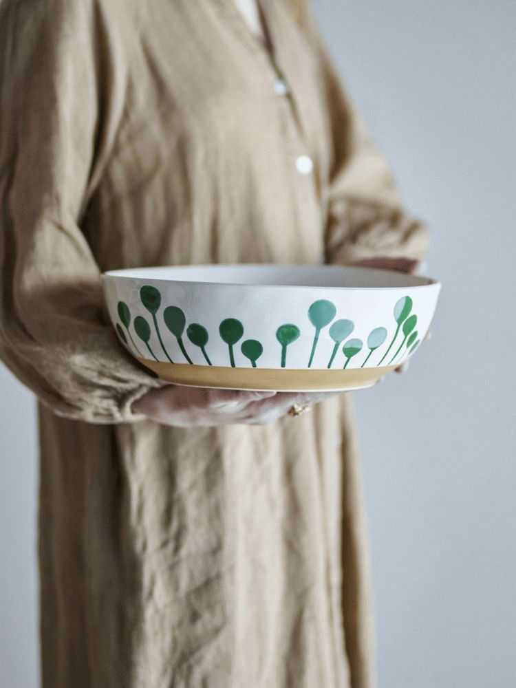 Det håndmalede mønster betyder, at hver skål er unik med små variationer i farveintensitet og detaljer. Denne individualitet gør Linora Serveringsskålen til mere end blot et funktionelt køkkenredskab – den bliver et personligt statement, der afspejler kærlighed til håndværk og design. Den grønne farve giver en frisk og levende atmosfære og passer perfekt ind i både moderne og klassiske indretningsstile.