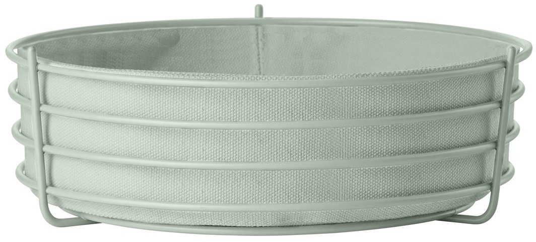 Smuk og udtryksfuld i al sin enkelhed. Ideel og præsentabel brødkurv med den vaskbare kanvasindsats, og uden indsats er kurven oplagt til fristende frugt og grønt. Metal og 100 % bomuld. Dia. 25,5 cm, højde 8 cm.