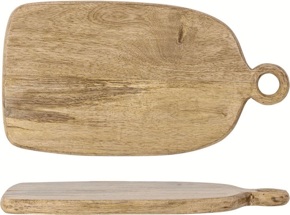 Nonnie Skærebrættet fra Bloomingville er fremstillet i mangotræ med en lakeret overflade, der fremhæver den naturlige åretegning. Det har let buede kanter og et afrundet håndtag med et rundt hul. Vises her i en varm beige tone. Da det er lavet af naturmaterialer, kan der forekomme farvevariationer, så hvert eksemplar er unikt.Længde: 35 cm