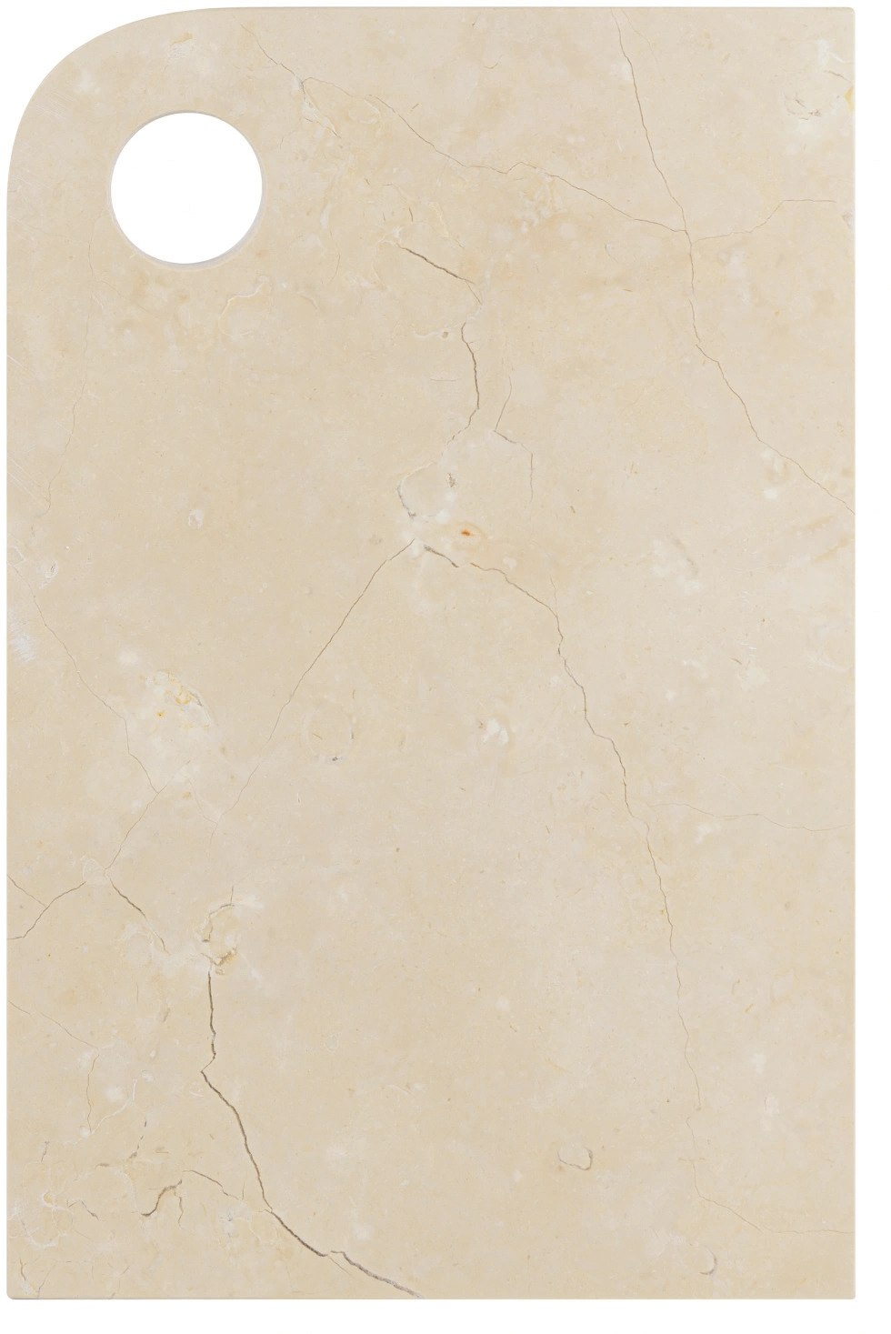 MARBLE serveringsbrættet i farven sand fra Mette Ditmer har et lyst og raffineret udtryk, der passer til både hverdagsbrug og særlige anledninger. Det lyse beige marmor fremhæver materialets naturlige skønhed, mens det karakteristiske design med ét afrundet hjørne og hul til ophæng forener funktion og æstetik. Brættet er ideelt til anretning af ost, tapas eller desserter og fungerer både som et praktisk og dekorativt element. De naturlige variationer i farve og årestruktur gør hvert bræt unikt, mens det solide marmor giver tyngde og holdbarhed. Når det ikke er i brug, kan brættet stå fremme som en del af køkkenindretningen og tilføre et roligt, elegant udtryk.Vask i hånden eller brug fugtig klud. Vi anbefaler alm. opvaskemiddel. Produktet er ikke egnet til opvaskemaskinen.Længde: 30 cm