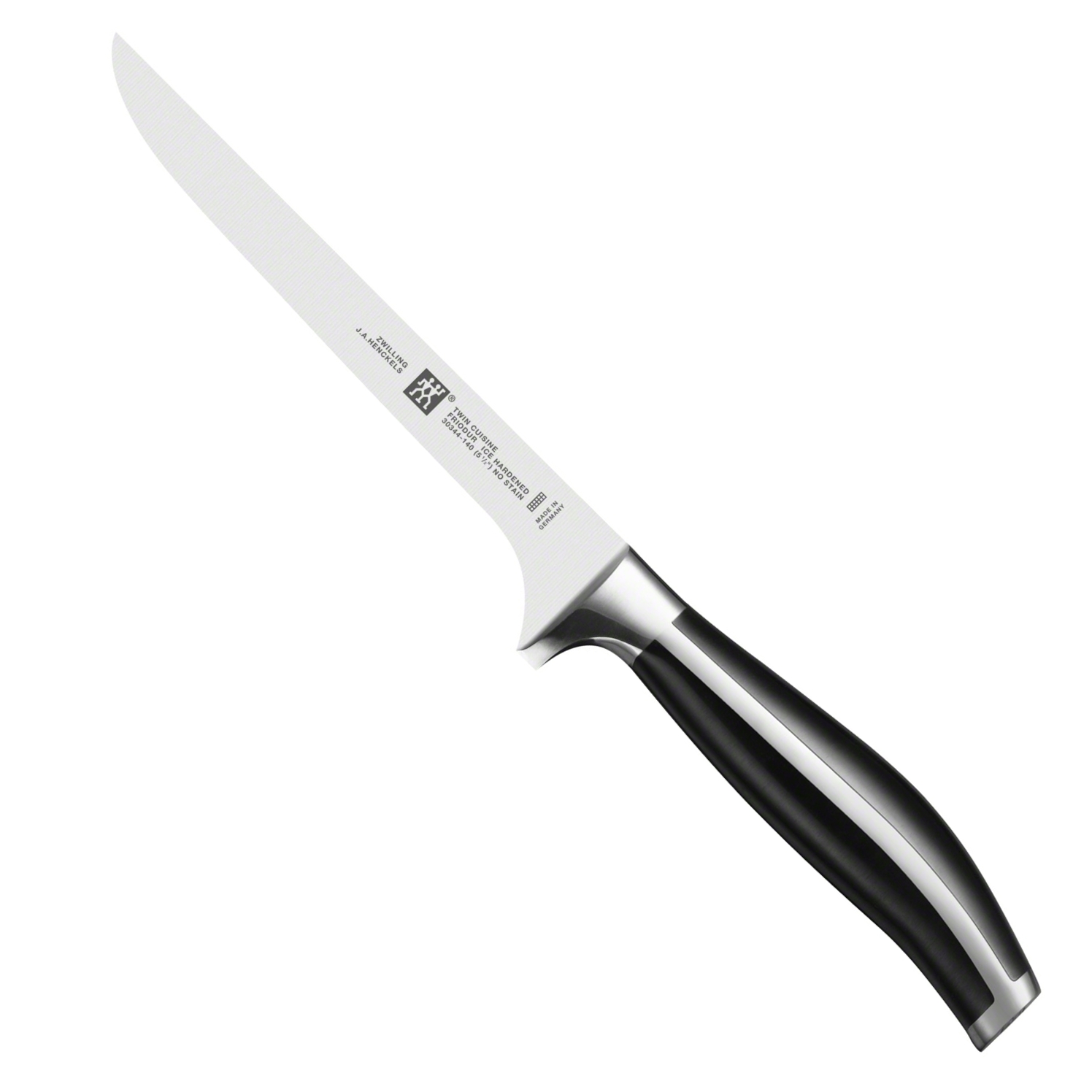 ZWILLING udbenerkniven fra TWIN® Cuisine serien er ideel til præcise og omhyggelige udskæringer. Det 14 cm lange blad separerer let og ubesværet ben og fjerner sener og fedt. Det fleksible blad med høj spids er en definitiv fordel. Udbenerkniven har et elegant design og et blad lavet af kvalitetsstål, som er ishærdet under anvendelse af en specielt udviklet teknologi. Dette gør FRIODUR® bladet særdeles robust og slidstærkt.Kniven er let at bruge, hvilket delvist er på grund af skaftet, som har en fuld tværgående angel. Brystet fungerer som en fingerbeskytter og sikrer den perfekte balance mellem blad og skaft. Den høje kvalitet af knivene kommer til udtryk i den helpressede samling af alle komponenterne. Med den rette pleje vil du kunne få glæde af denne førsteklasses model i lang tid, rengør derfor kniven i hånden med lunkent vand og et mildt opvaskemiddel. Opdag de fremragende egenskaber af denne ZWILLING udbenerkniv fra TWIN® Cuisine serien og udskær kød som en professionel.