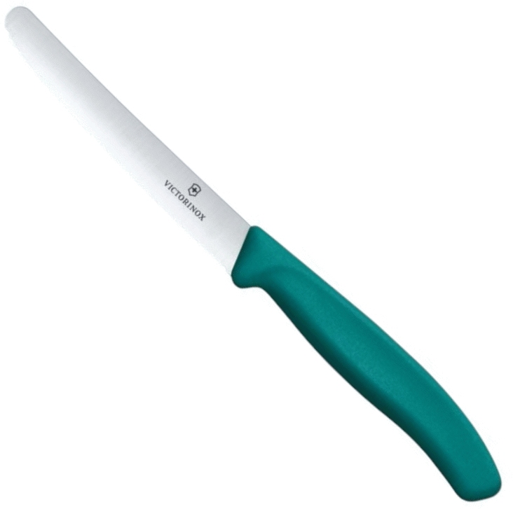 Victorinox Bordkniv/Tomatkniv SwissClassic 11 cm kombinerer schweizisk præcision med hverdagens madlavningsbehov. Denne specialdesignede kniv med sin karakteristiske røde farve er skræddersyet til at skære perfekt gennem tomaters tynde skind og saftige indre uden at mase frugten. Den 11 cm lange klinge repræsenterer Victorinox' verdensberømte kvalitetshåndværk, som har gjort mærket til et foretrukket valg blandt professionelle kokke verden over.Klingen er fremstillet af en særlig stållegering, der balancerer fordelene ved både kulstofstål og rustfrit stål. Denne unikke kombination sikrer en exceptionel skarphed, der holder sig længere end almindelige køkkenknive. Den savtakkede æg glider ubesværet gennem tomater og andre grøntsager med minimal modstand, hvilket gør den ideel til præcisionsskæring i køkkenet.