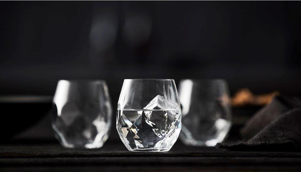 Krystal Alkemist Vandglas – glassenes mange facetter reflekterer lyset og farverne i drikken, så du kan nyde både smagen og synet af vand eller juice i en superflot servering. 3 stk. 38 cl.