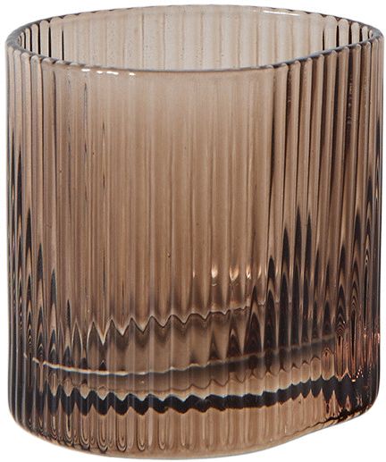 Den røgede farvetone giver glasset et sofistikeret og varmt udtryk, der passer perfekt til både hverdagsanledninger og festlige lejligheder. Det riflede glasdesign skaber ikke kun et visuelt interessant element, men gør også glasset behageligt at holde ved med sit ergonomiske greb.